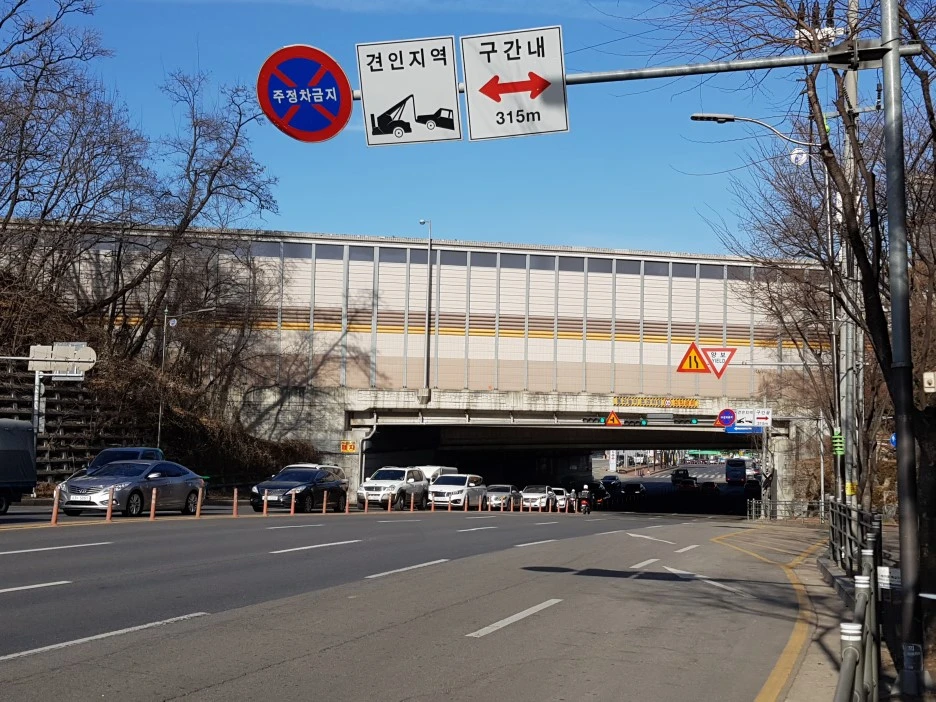 앞에 보이는 굴다리는 영동고속도로를 관통한다. 영동고속도로가 강릉에서 서울방향으로 달리다가 경부고속도로와 만나는 지점이 신갈이다.