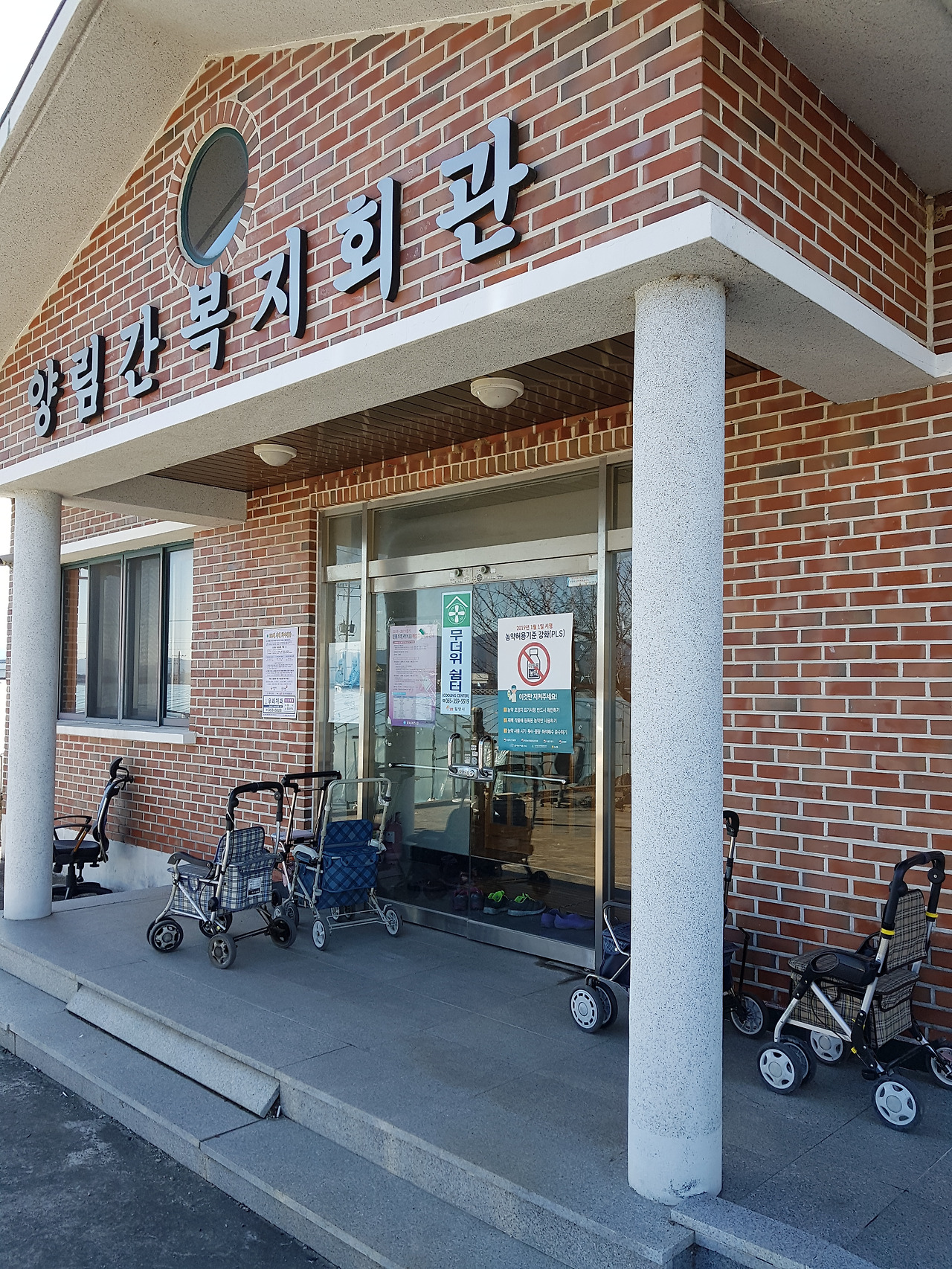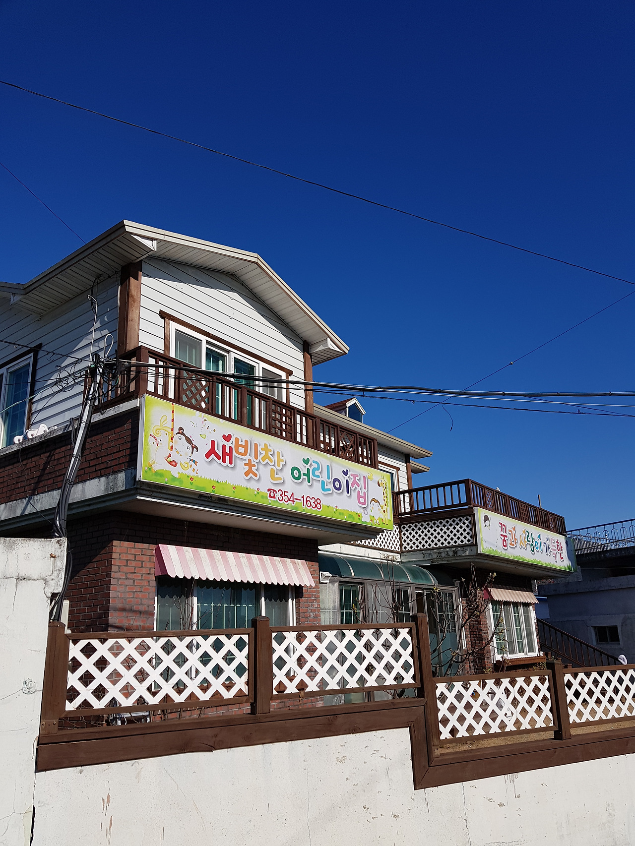 근처 복지회관에 할머니들이 끌고 오셨을 보행기가 사이좋게 서 있다. 복지관에서 멀지 않은 곳에는 어린이집이 있다.