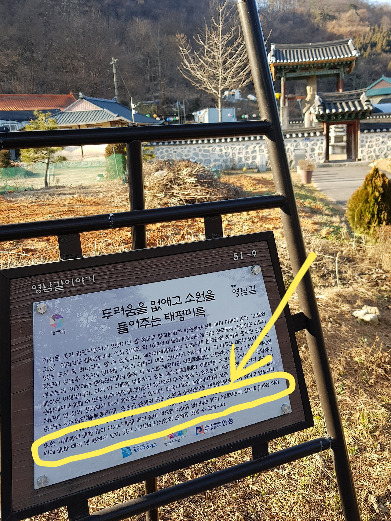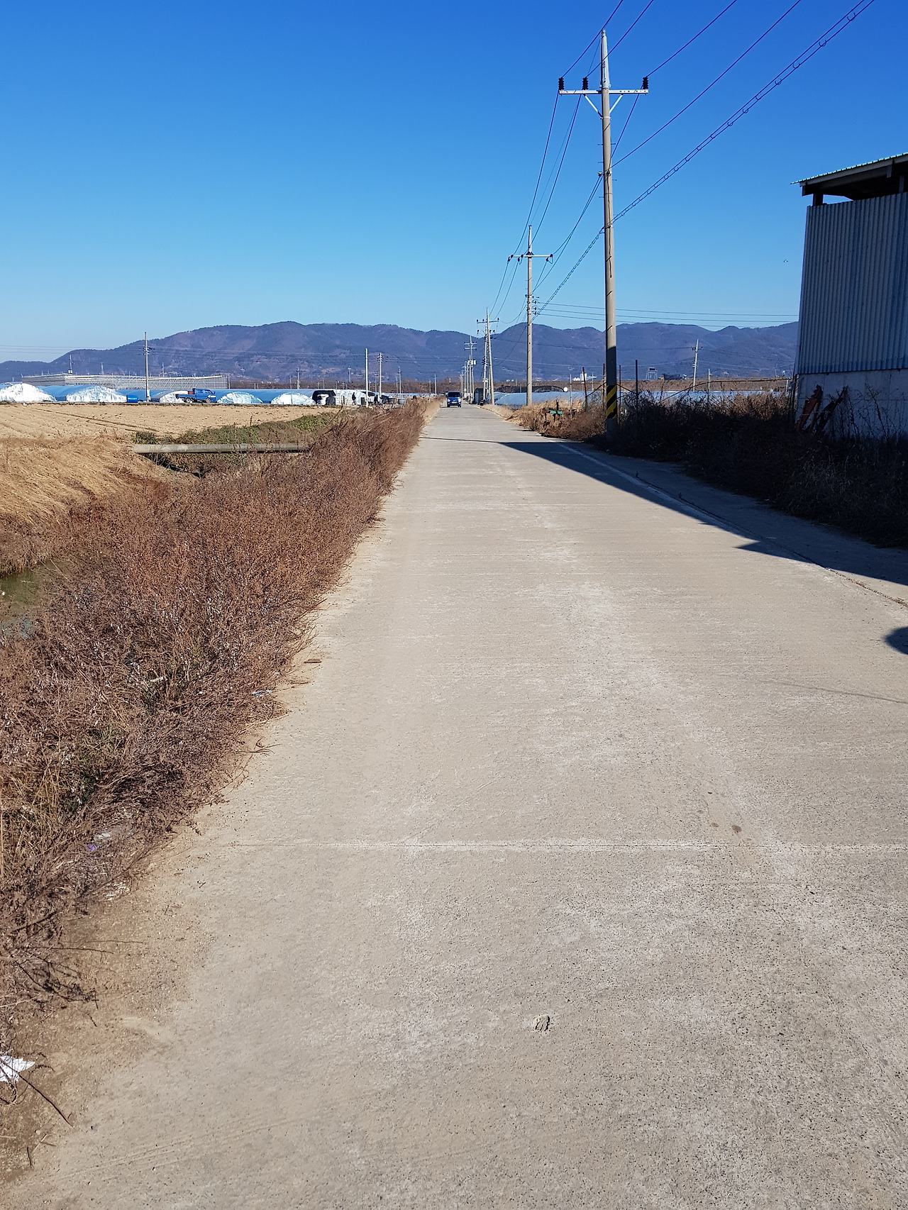 밀양강을 건넌 후 지름길을 택했다. 양 옆으로 비닐하우스와 논밭이 이어지는 시골길로 접어들었다. 아스팔트가 아닌 시멘트 포장이 정겹다.