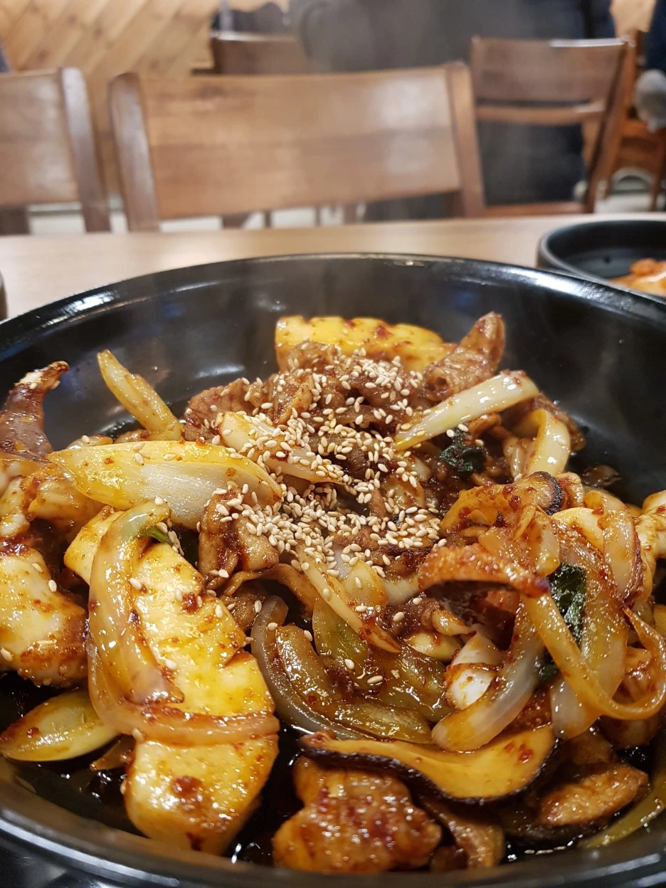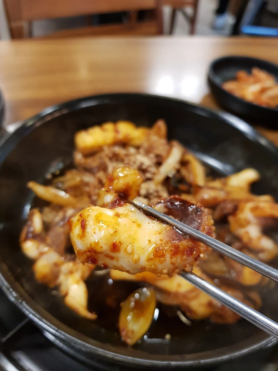 갑오징어볶음과 제육볶음을 섞어 2인분을 주문했다. 맛은 만족스럽다. 점심식사였던 김치찌개 돈까스와 더불어 저녁식사까지, 밀양의 음식들은 내 입맛에 잘 맞았다.