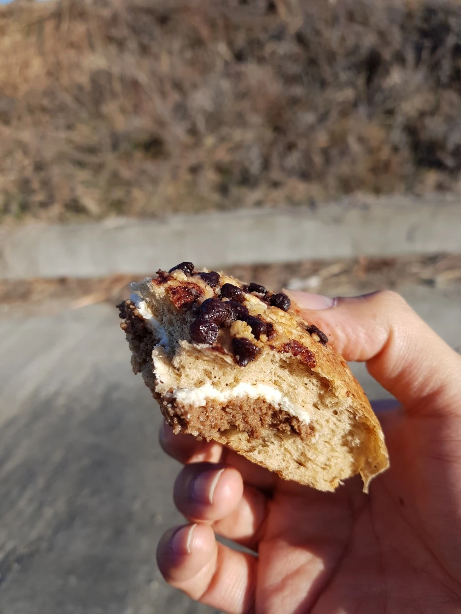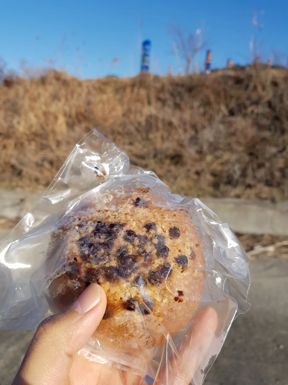 등골이 서늘해질 때즈음 일어나 앉아 빵으로 요기를 한다. 아침부터 입때껏 논밭과 비닐하우스로 이어진 시골길에는 식사를 할 만한 곳이 아무것도 없었다. 어제 빵을 사 두지 않았더라면 낭패를 보았을 판이다.