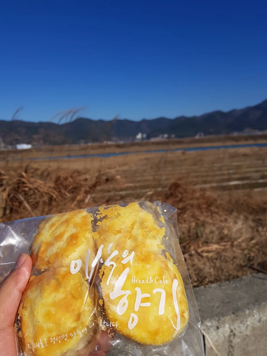 출발한지 한 시간쯤 되었다. 삼랑진 읍내를 벗어날 때까지 문을 연 식당이 없어 여직 공복이다. 바람을 피해 둑 아래 앉아 어제 산 빵을 하나 뜯었다.