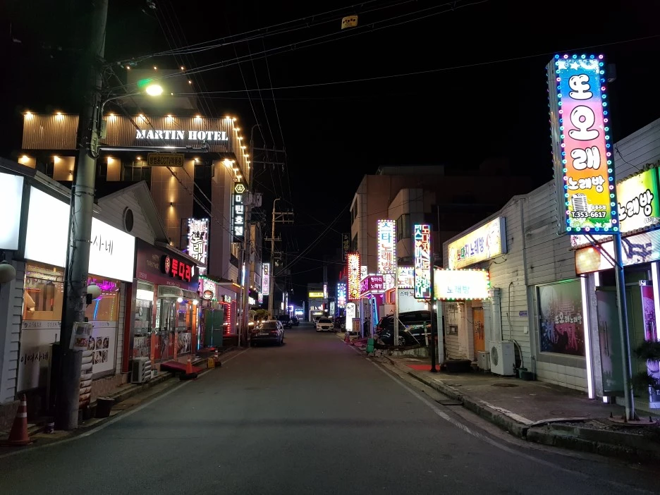 숙소로 정한 모텔이 있는 골목으로 들어선다. 예상대로 각종 술집과 노래방이 모여 있다. 자고로 공무원 접대에는 음주가무가 빠질 수 없다.