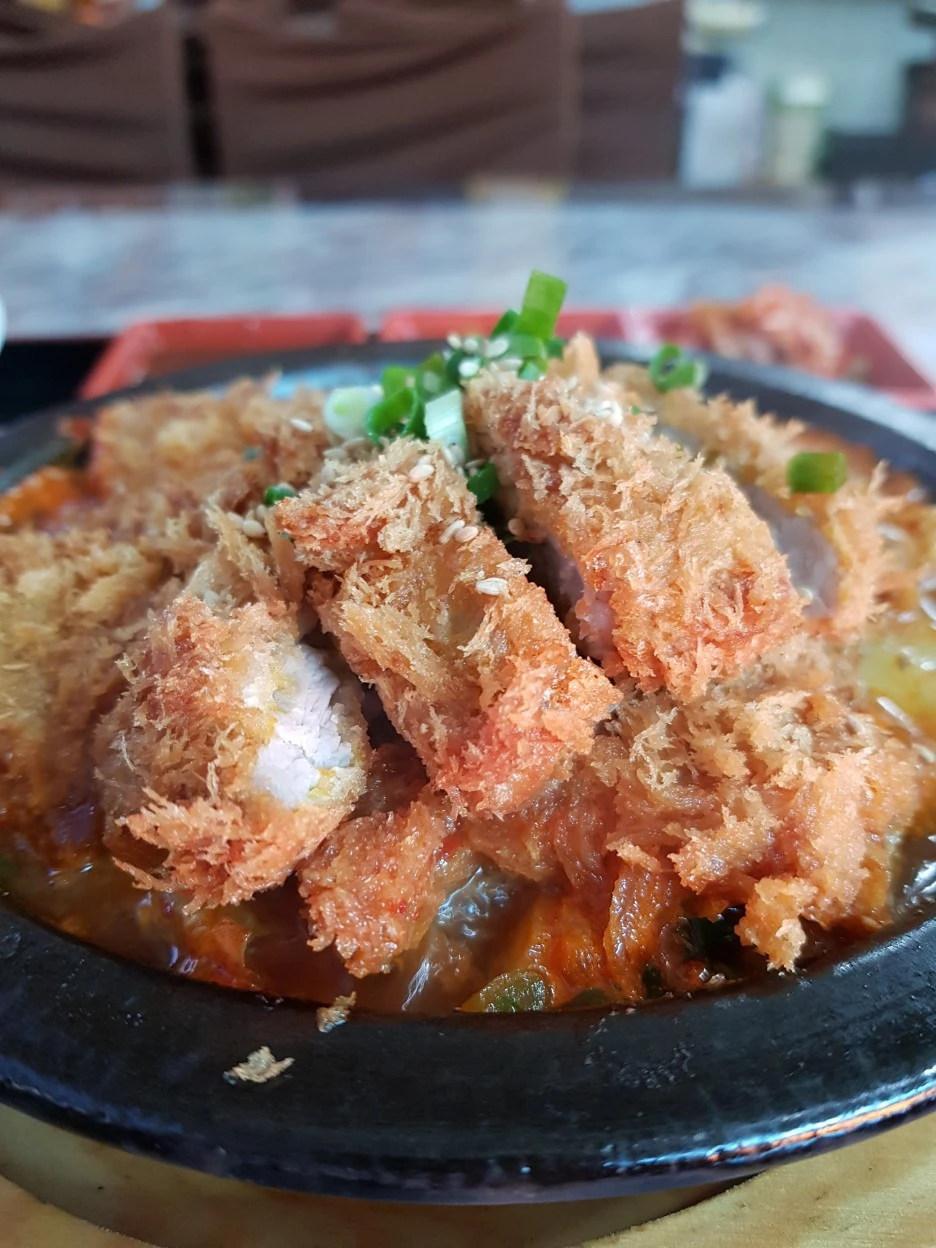 밀양에서 들른 이 식당은 이번 여행에서 만난 3대 맛집 중 하나다. 내가 먹은 메뉴는 김치찌개 돈까스로, 자작하게 끓인 김치찌개 위에 돈까스를 얹었다. 말하자면 '돈까스 김치나베'다. 이미 꽤 알려진 메뉴인 듯하나, 처음 먹어본 나로서는 상당히 맛이 있었다. 돈까스의 느끼함을 김치가 잘 잡아주었다.