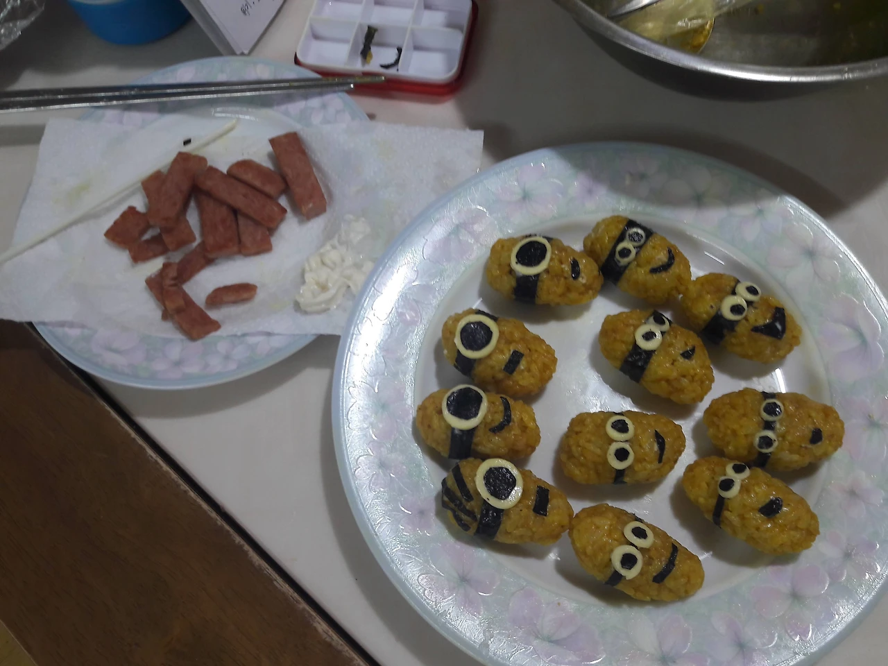 아이들이 어린이집, 유치원, 초등학교를 거치는 동안 엄마표 캐릭터 도시락도 발전을 했다. 현장 체험 학습을 가는 날에 주로 쌌다. 처음엔 그저 남기지 않고 다 먹고 오게 하는 게 목적이었다면 점차 아이의 요구를 성심성의껏 들어주는 것으로 방향이 바뀌었다. 다른 아이들 입에서 '와!' 소리가 나는 도시락을 만들어 주기란 쉽지 않았다. 출근 전에 도시락, 간식, 과일, 음료수를 챙겨 오밀조밀 예쁘게 싸는 일은 늘 분초를 다퉜다. 아침에 김을 오리고, 약병 뚜껑이나 빨대로 치즈를 뚫는 일은 꿈도 꿀 수 없었다. 그런 건 다 전날에 밑 작업을 해 둬야 다음 날 지각을 면했다.