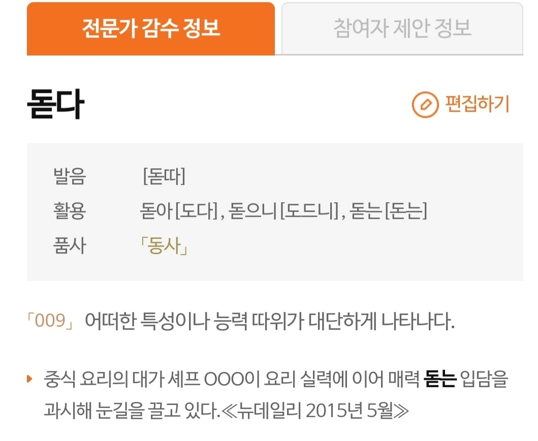 우려가 현실이 됐다. <우리말샘>에 '돋다009'가 다음과 같이 올라 있다.