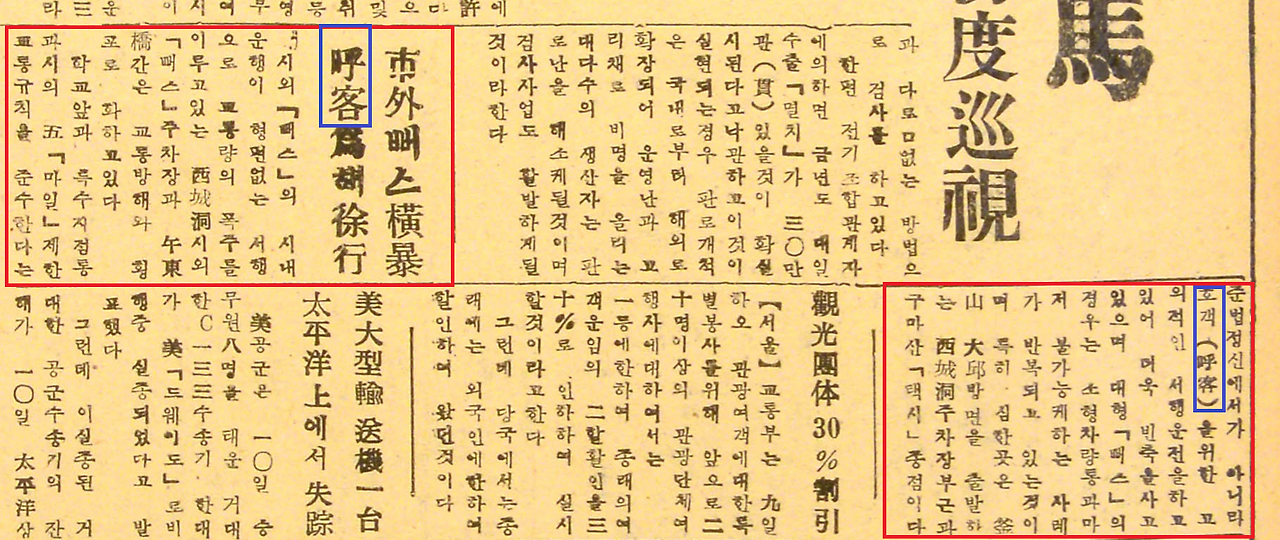 위 호객(呼客)'은 <마산일보 1961년 6월>에 가장 먼저 나온다.