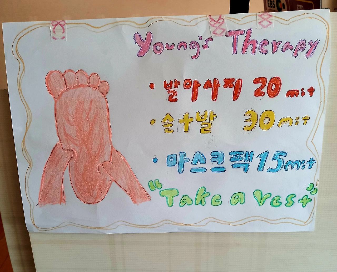 딸은 푸드 코트, 카페, 영화관, 올영, 세러피 숍(therapy shop), 보드게임 카페 등이 있는 대형 쇼핑몰을 특히 좋아한다. 그래서 한 번씩 필 꽂히는 날. 먹거리, 볼거리, 놀거리를 즐길 수 있게 집을 쇼핑몰로 꾸며 남편과 큰애에게 서프라이즈를 한다. 그때마다 아이의 정성과 그럴듯함에 두 남자의 얼굴에 기쁨과 행복감이 만연하니 신나서 규모가 점점 커진다. 상황이 이러니 나는 나대로 옆에서 거들 일이 많다. 학교 다닐 때 엄마는 미술이 제일 싫었어. 해도 안 봐준다. 뭔가를 반드시 만들어 내야 한다. 1시간쯤 걸려 마사지 시술표를 그리고 외투를 챙겨 입고 밖으로 나왔다. 어디부터 가야 하나. 음....... 사야 할 음식의 종류와 가게 위치로 머릿속이 분주하게 돌아가기 시작했다.