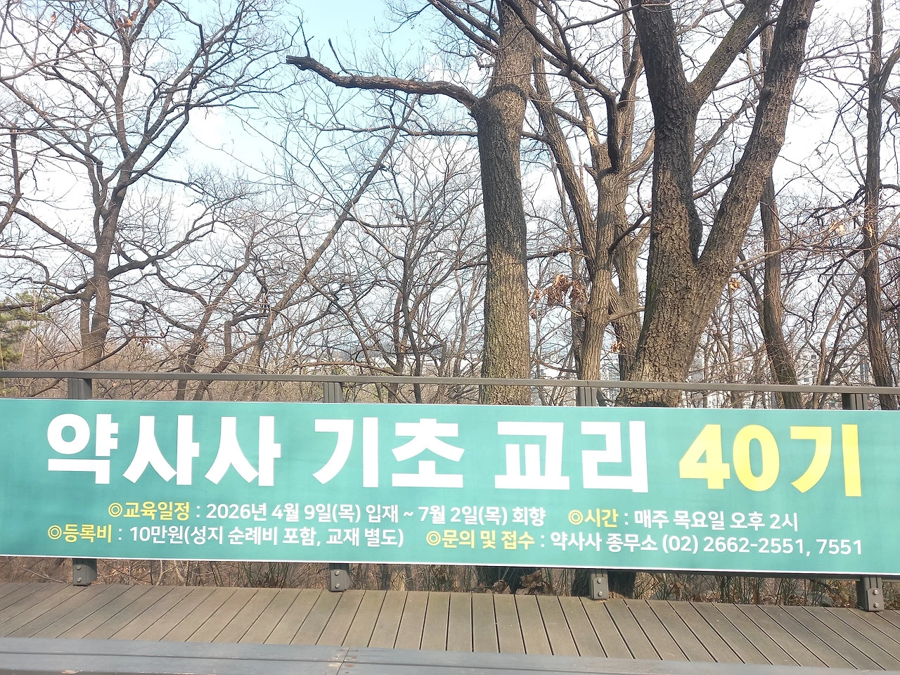 9시 54분. 약사사 입구에서 반배를 하고 법당에 들어간다. 좌복과 법요집을 챙겨, 붉은 가사를 왼쪽 어깨에 두르고 사시 예불을 기다리는 스님을 대각선으로 해서 자리를 잡는다. 삼배를 하고. 보례진언을 왼다. 천수경을 독송한다. 1시간이 조금 넘게 불공을 드린 후 법당을 나와 3층 석탑 앞에서 합장을 한 후 산을 내려온다.