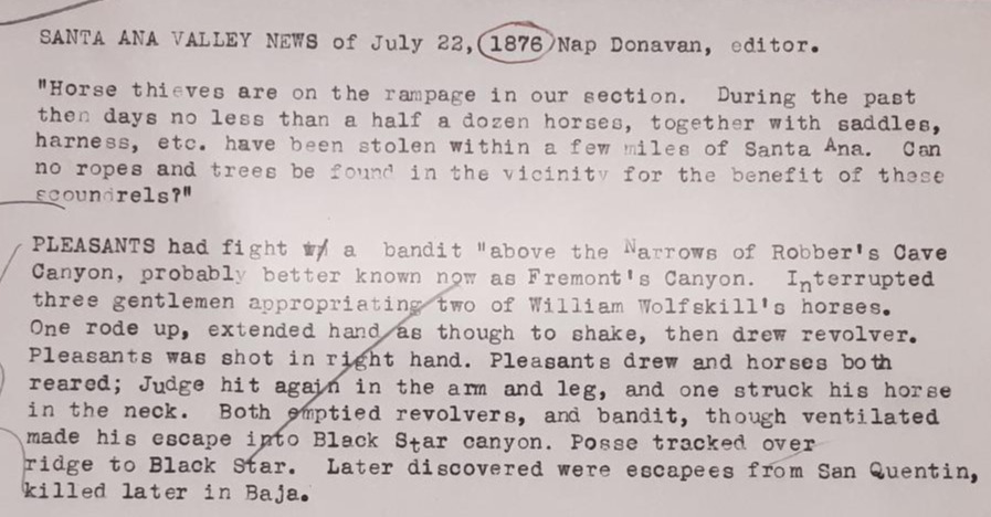 1876년 7월 22일 자 산타 애나 밸리 뉴스 신문 기사