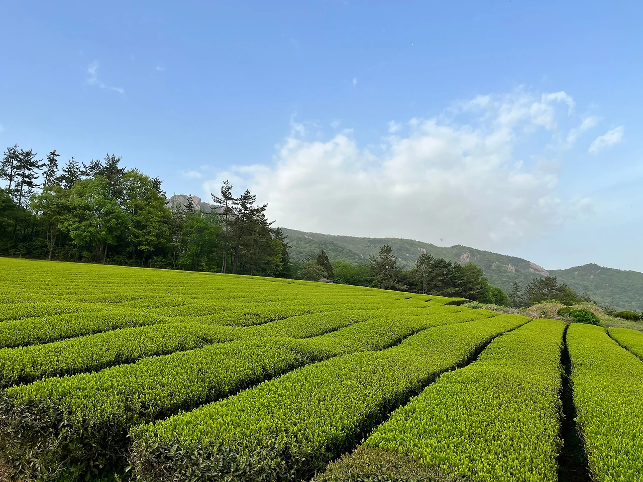 무위사로 넘어가는 길목에서 나는 작은 탄성을 질렀다. 길 양쪽으로 푸른 녹차밭이 끝없이 펼쳐져있었기 때문이다. 녹차하면 생각나는 곳이 보성이고 오래전에 보성 녹차밭에 가본 적이 있었기 때문에 강진의 녹차밭에 거는 기대는 크지 않았다. 그런데 내가 이곳을 과소평가했던것이다. 녹차밭은 예상보다 훨씬 넓게 펼쳐져 있었다.