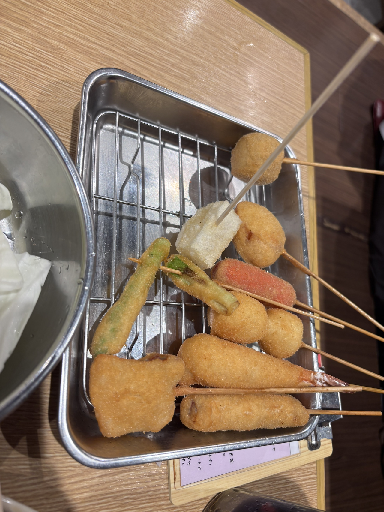 그라고 다시 걸음을 옮겨간 신세카이는 우리나라로 따지면 약간 종각같은것이 3040대들의 술거리같은 느낌으로 압도적인 간판들이 눈에 띈다. 생각해보면 째째하게 휴지도 잘 없고, 반찬도 따로 안주는데 광고는 엄청나게 하는 것이다. 이 간판의 특징이 오사카 특징인지는 모르겠는데 보는 재미만큼은 요긴하다, 뭘가 공기주머니처럼되서불빛이 들어오는 것, 나무로 크게 만들어진 것 등 입체감이 넘친다. 우리는 간단하게 튀김요리를 먹었는데, 적다고 한 것과는 달리 튀김요리가 배가 금방차올랐다. 빈 그릇이 나오자 직원이 친절히 그릇을 치워주는 데 한국인인 우리는 괜시리 빨리나가라는 시그널인가 싶기도 하는데, 어떤 의도일까?라는 생각이 든다. 이탈리아에서는 치워주는 것이 편히 이야기를 나누라는 의미로 하는 하는 종업원의 해야할 일 중 하나라는데. 일본의 실용주의를 본 나로서는 회전율을 높이기위해 내보내려는 게 아닐까? 라는 생각이 든다.