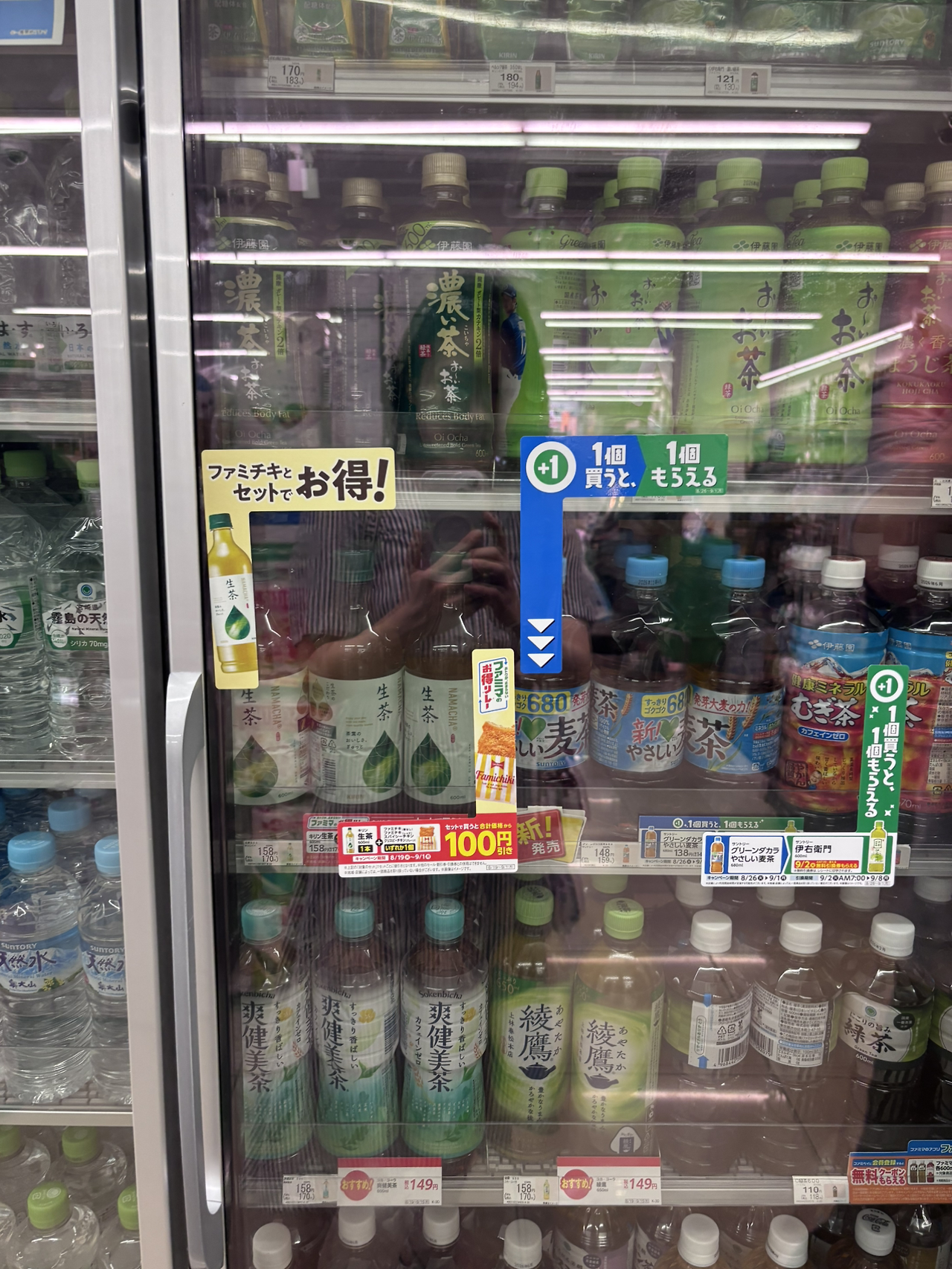 숙소로 복귀하며 들린 편의점, 편의점뿌시기에 맛들린우리는 일본의 다양한 차를 하나씩 먹어보고 있다. 특히 현지인이 마시는 물은 무엇일까? 유심히 살펴보다 알게 된 점은 저렴한 물이라는 것들이라는 것을 알게되고, 생각해보니 우리나라에서 내가 굳이 비싼 물을 먹지않는 것과 비슷한 맥락이다. 그러고보니 여기 냉장고안에 불이 안들어오는 것이 이것도 아끼는 것같다. 그리고 전체적으로 플라스틱 제품이 적인 것같은 것은 기분탓일까?