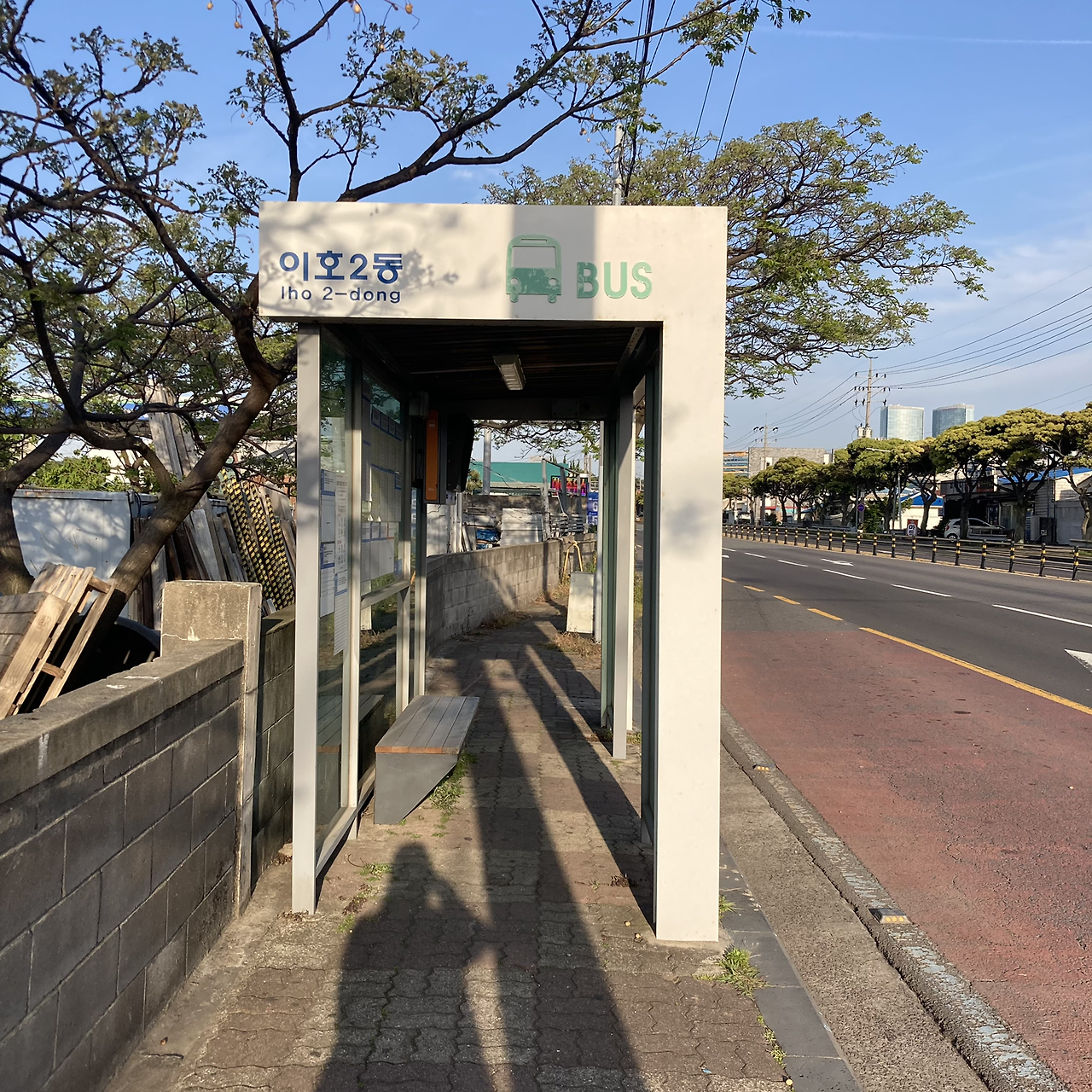 그리고 다시 나가는 길에 보일러를 아예 끄고 외출을 한다. 이번 외출에는 그래도 제주도에 왔으면 바다를 보러 가야지라는 생각에 찾아놓았던 오션뷰카페를 갈 계획이다. 카페에서 나만의 프로젝트를 진행할 생각에 노트북을 들고 가본다. 비교적 가볍다는 엘지 그램이지만 그래도 집에서 본체처럼 쓸 용도로 산 노트북이라 17인치. 부피감이 있다. 걸어가면 60분! 버스 타면 30분! 선택은 당연히 버스였다. 버스정류장에 도착하니, 이런 내가 보았던 시간과 뭔가 다르다. 자세히 보니 배차간격은 포함이 안된 소요시간인 듯하다. 이 배차시간이 잘 이해가 되지는 않지만 결국 걸어서 가나 버스를 타고 가나 소요시간은 비슷하게 걸렸다.