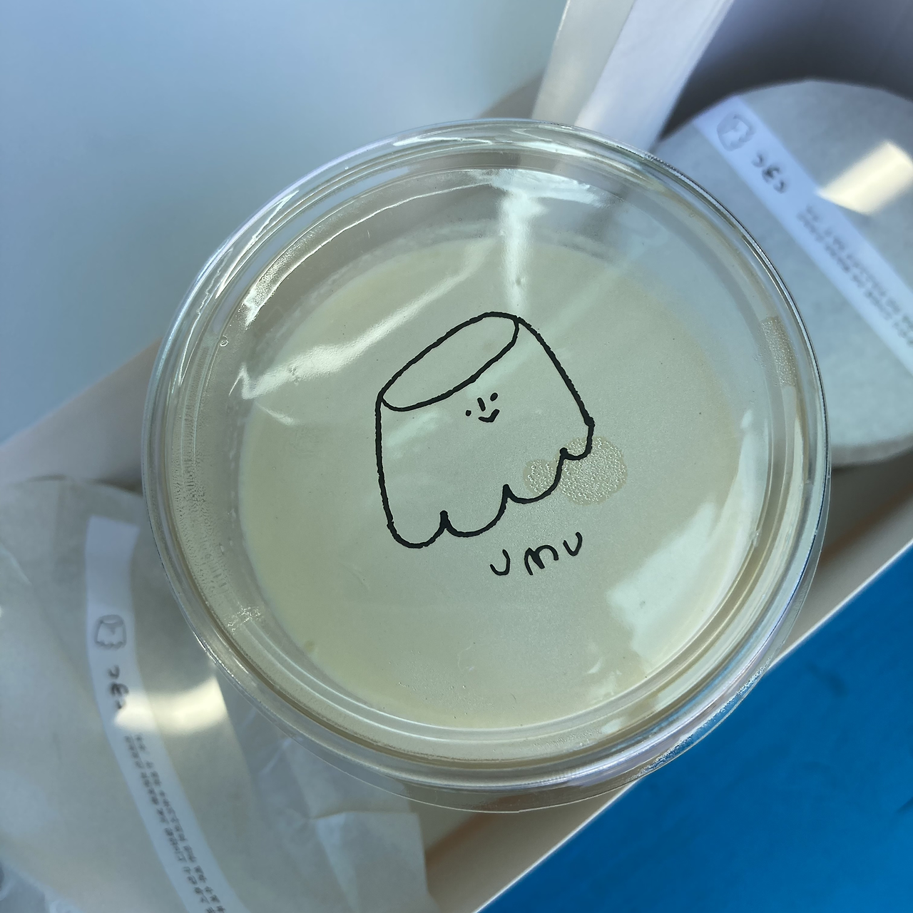 그래서 우리는 귀여운 푸딩을 조금씩 포장을 뜯어 살펴보았다. 20-30대의 취향을 저격했다고 느껴지는 패키징이다. 푸딩 위에는 꼭 항아리 같은 느낌이 연출되도록 흰 얇은 용지로 감싸고 그것을 또 고무 밴딩으로 고정을 해놓았는데, 푸딩의 색에 맞춘 밴딩이다. 그 흰 종이에는 고유브랜드의 특징이 2줄로 잘 적혀 있다. 먹으면서 살펴보니 그 푸딩용기도 친환경으로 따로 제작을 하였는지 로고가 찍혀있다. 후에 자세히 브로슈어를 살펴보니 모든 제품이 친환경으로 만들어진 것으로 플라스틱이 아닌 일반쓰레기로 배출해 달라는 안내가 있었다. 개인적으로 다음에 진행하려는 프로젝트가 있는데, 이 패키징에서 많이 보고 느끼는 바가 많다.