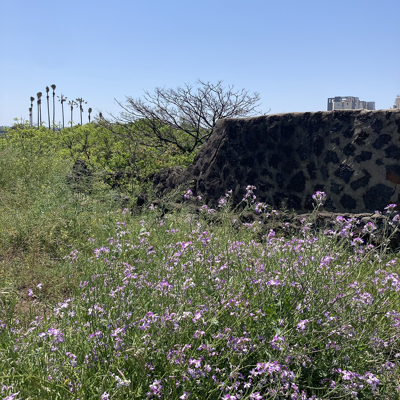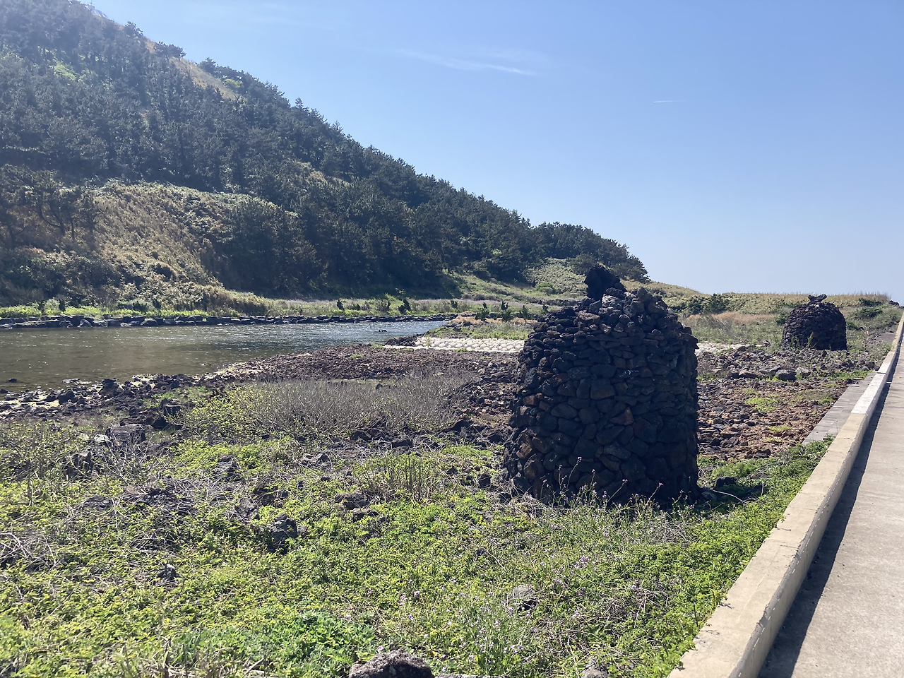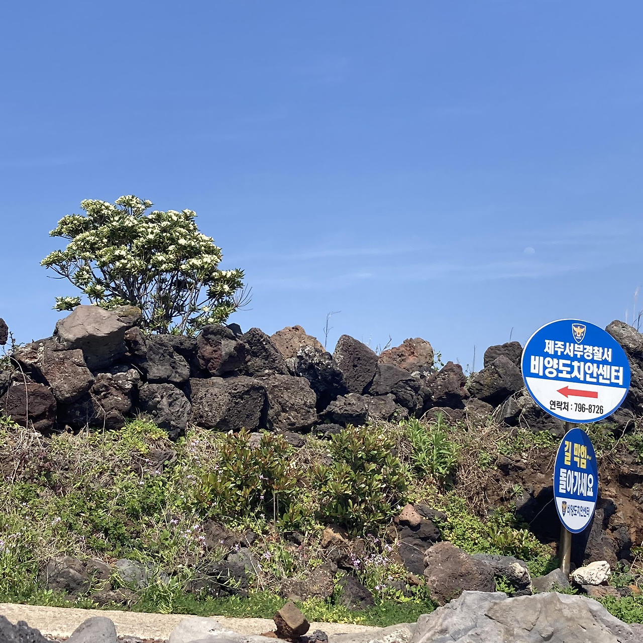 풍차가 있는 곳까지 소요시간을 보고 마저 한 바퀴를 돌지 판단하기로 했다. 사람들이 왜 비양도를 추천하는지 알게 되었다. 사전 정보도 없이 자연경관이 좋다는 것만 알고 가게 되었는데 그것만으로 모든 것이 충족되는 공간이었다.작은 섬이어서 해안길을 따라가는 그 어느 길에서도 한쪽에서는 제주의 바다, 반대편은 산봉오리가 있는 것이 달고 짠 음식처럼 조화로웠다.