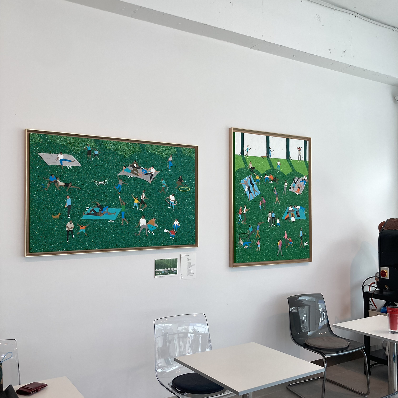 다시 되돌아가는 길에 그 카페이 들려보았다. 깔끔한 화이트 배경에 초록색으로 포인트가 되어 있다. 그리고 가구는 우드가 아닌, 메탈이나 플라스틱인 것이 도시적인 느낌을 준다. 더위와 아쉬운 마음에 해결될 거라는 직감이 들었다.
