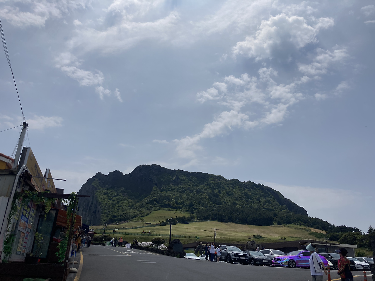 성산일출봉을 바라본다. 그런데 1시간이나 걸려서 등반을 하는 동안 이미 충분히 성산일출봉을 음미해서 그런지 엄청 감회가 새롭다거나 그러지는 않았다. 그래도 아직 에어컨을 키는 곳이 없는데, 1층은 에어컨을 켜져서 땀을 식히고, 배를 채우며, 배차시간을 보며 이동했다. 머리가 핑한다. 왜지?
