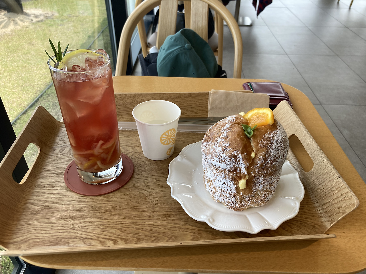 그 카페에서 파는 시그니처메뉴들를 주문했는데, 음료는 시즌이 지나서 다른 아이스티로 주문하고 빵은 제주도한라봉몽블랑을 주문했다. 그렇게 해서 16500원 빵이 8500원 정도 했던 것 같다.