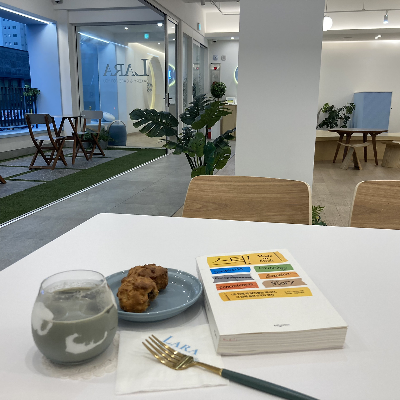 5분이지만 운동화가 젖는 역경을 딛고 온 카페는 개방을 했지만 습습하지 않았다. 빵이 아주 매력적이지는 않았지만 공간이 아주 광활하고 그 자리 배치도 여러 가지로 인테리어 되어 있어서 아주 흥미로웠다.