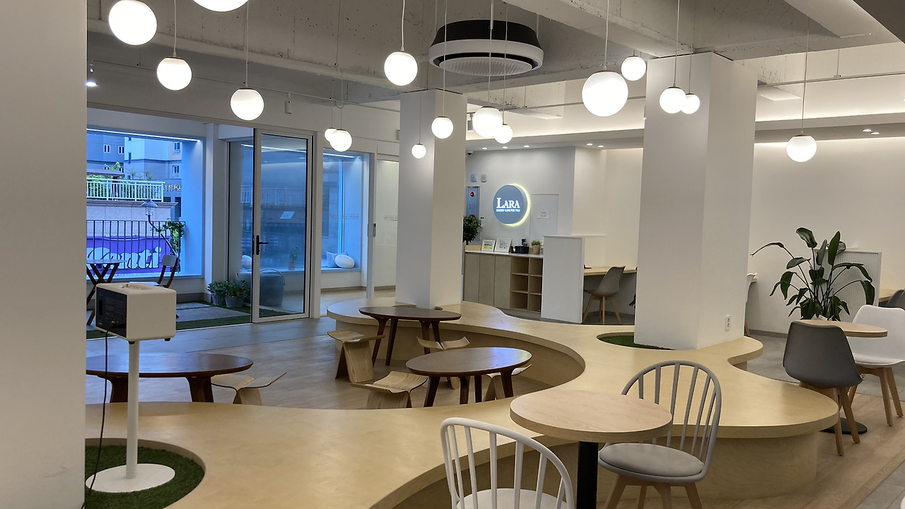 내가 머문 공간은 반대쪽에 있는 공간으로 아이들과 함께 않을 수 있는 좌식 같은 공간, 그리고 개인 독서실처럼 앞가림이 있는 개인 석, 창가에 자연채광과 바람을 즐길 수 있는 테라스 석, 벽을 따라 있는 소파배치 등 여러 좌석 형태가 구성되어 있다.