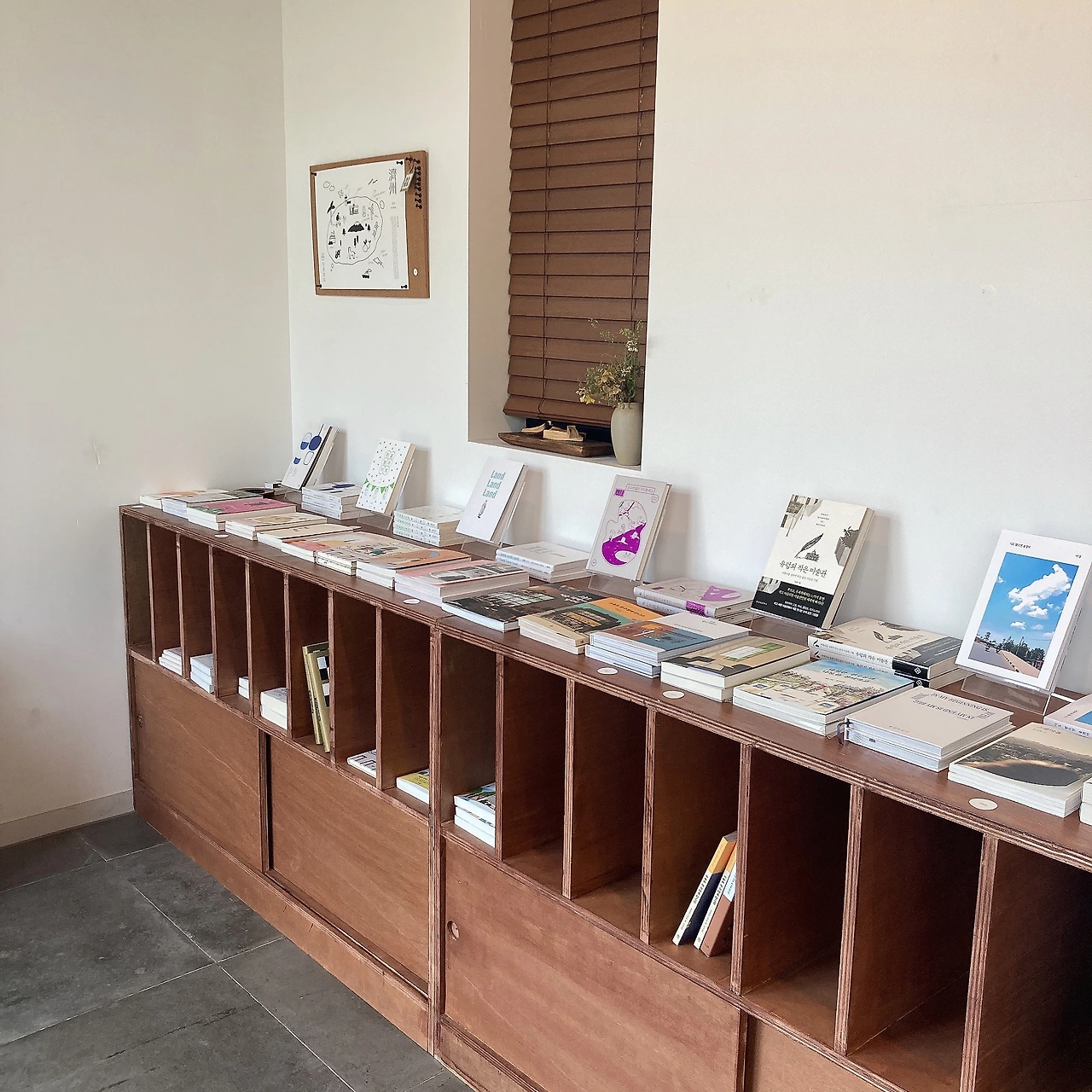 그리고 도착한 공항서점! 두근두근 너무 조용하면 어찌하나. 정갈해서 참 좋은데, 뭔가 너무 조용한 매장은 나 혼자 있기 민망하잖아! 라며 소리치면 일단 인증샷을 찍고 들어가려는 엉? 문이 잘 안 열린다. 그래 보통 문은 당시기오지 하고 밀었던 문을 다시 당겨 본다. 책방지기님이 문이 좀 무겁다고 해주신다. 오홍 그런데 딱, 들어왔을 때 노래! 가 적당히 경쾌하니 아주 좋다.