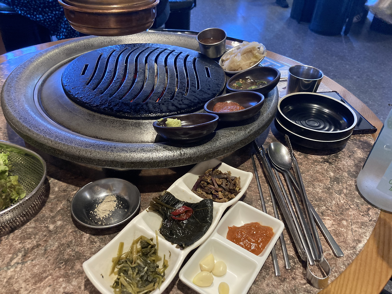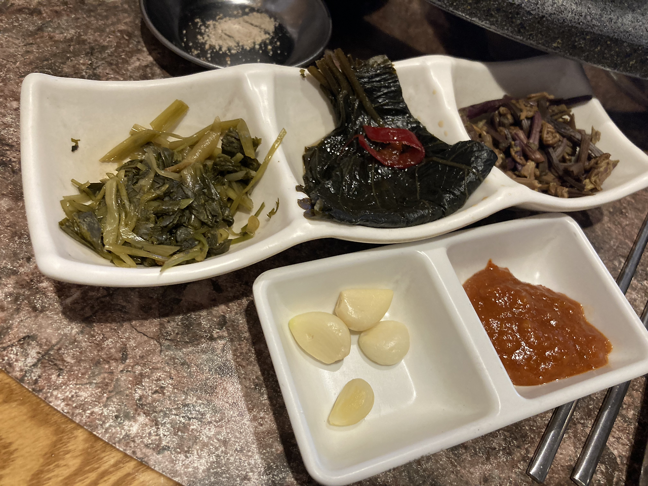 우리는 10번이라는 번호 받고 기다리게 되었다. 유명한 데는 다 이유가 있다. 소금에 고기만 찍어 먹어도 고기가 부드러우면서도 육즙을 품은 것이 맛있다. 그리고 특이하게도 빨간 김치가 아닌 백김치가 나온다. 강렬한 맛이 더 해지지 않아도 고기만 있어도 충분히 맛있다. 다른 반찬들도 삼삼하니 제주스러움이 묻어나는 특별한 무침들이 있었으나, 고기의 맛이 돋굴뿐 더 강렬하지 않았다. 서비스로 나온 김치찌개도 묵은지를 활용했는데도 불구하고 자극적이지 않으면서 좋았다. 만족스러웠다.