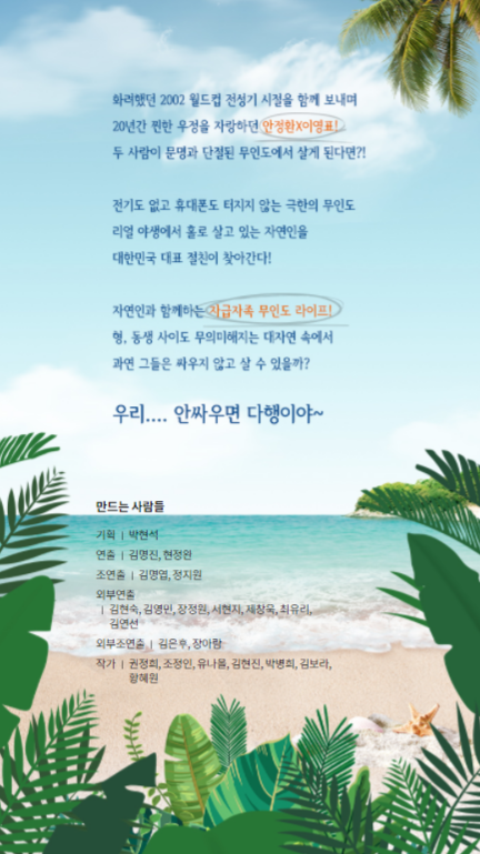 이 기억하는 소재인데다, 지금 다시 조명했을 때 새롭게 다가올 수 있는 이야기라는 점에서 시의적절한 캐스팅. 이영표-박지성 등 2002 주역들을 중심으로 릴레이 출연을 성사시킬 수 있다면 화제성만큼은 보장되지 않을까.