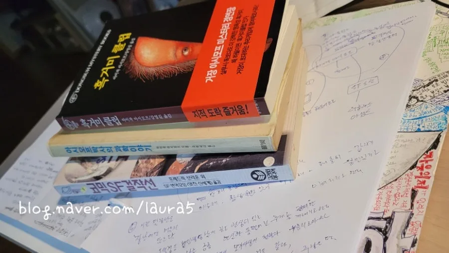 흑거미클럽은 친정집에 있어서 새로 샀고, 다른 두 책은 30년쯤 되었나? 헉,.1991년 도판이네.