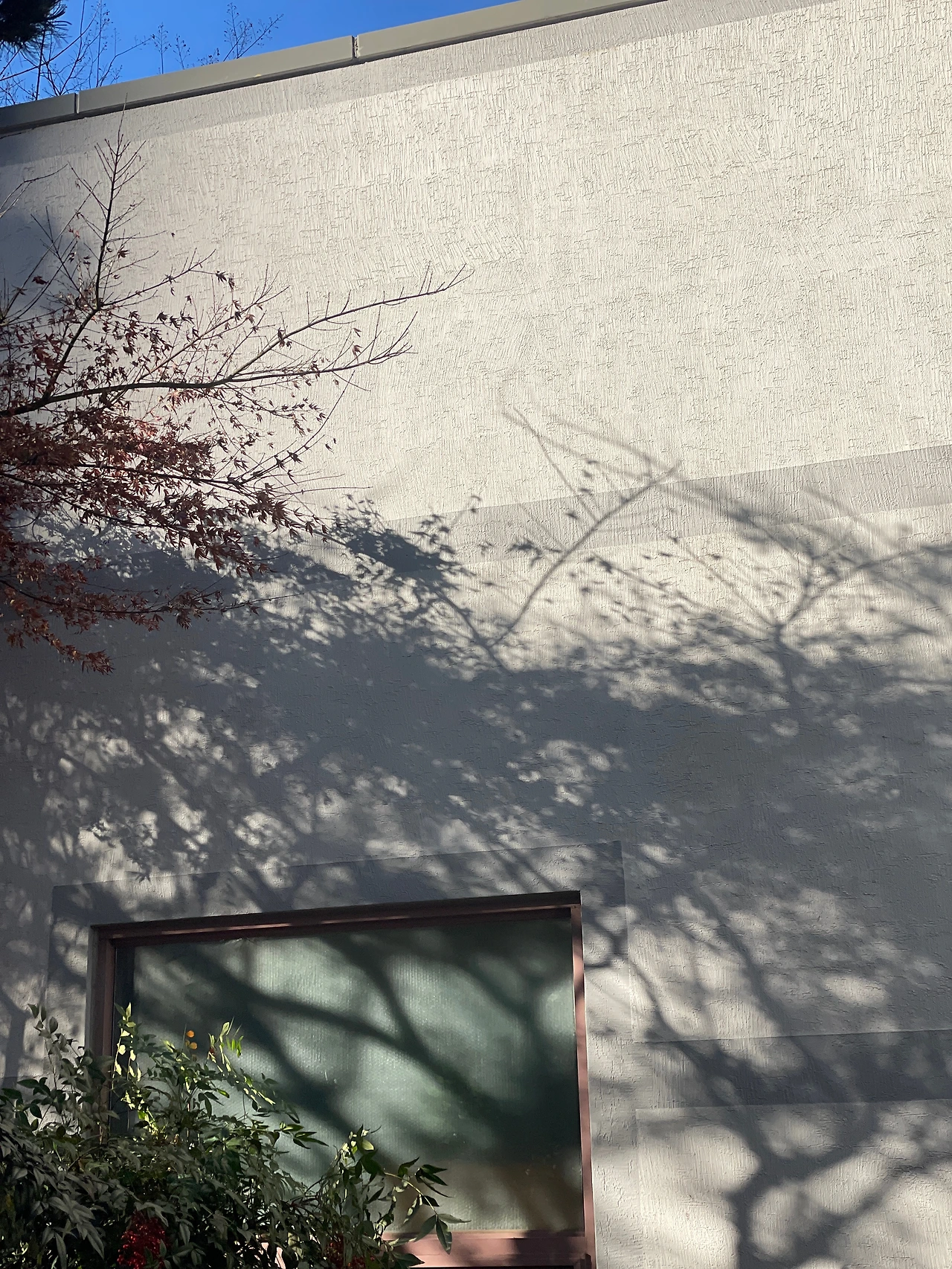 조금 보이는 세모진 하늘, 멋스럽게 드리운 나무 그림자, 근사한 캔버스같던 재색 외벽을 보았다.