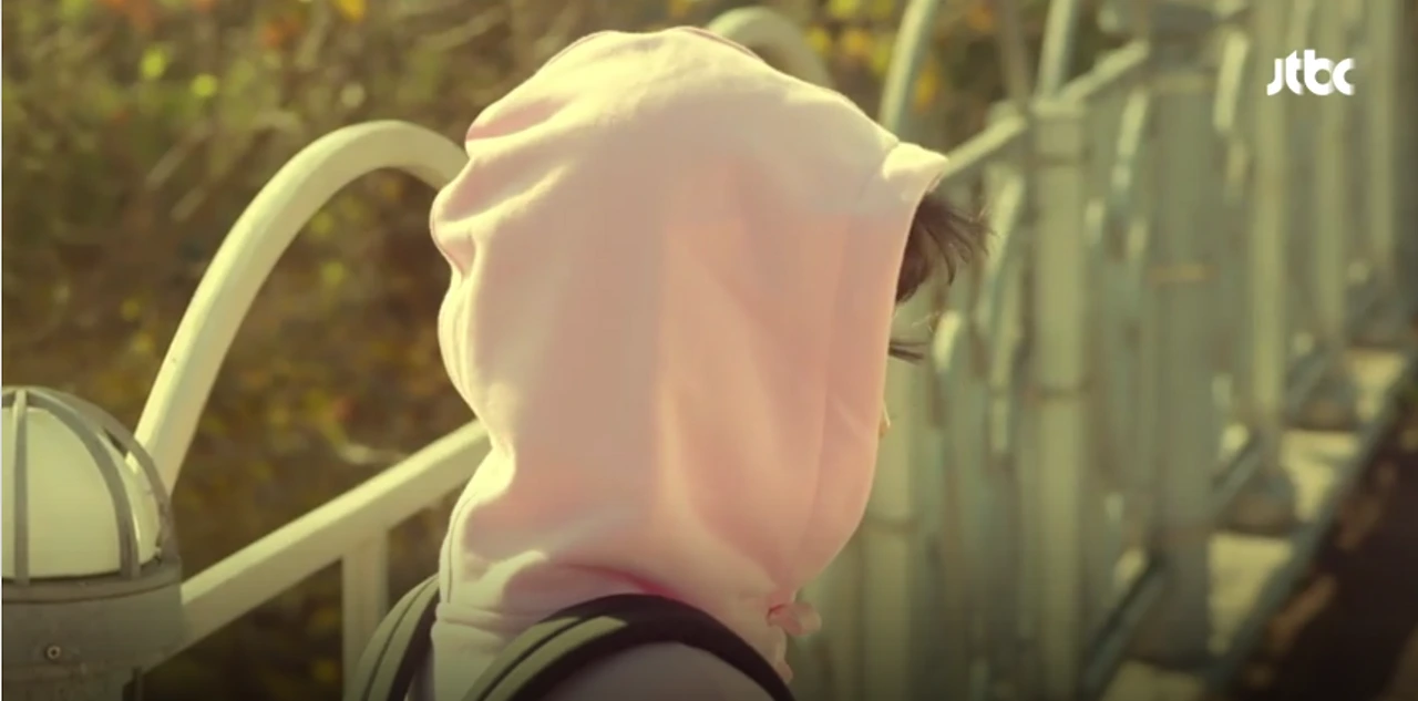 <힘쎈여자 도봉순>의 첫 장면은 고등학생 안민혁이 고등학생 때 친모의 묘지에 방문하는 장면이다. 이때 안민혁이 탄 마을버스의 타이어가 펑크 나서 사고가 날 뻔하는데, 괴력 소녀가 나타나서 구해준다. 안민혁은 그녀를 핑크후드괴력소녀로 첫사랑 비슷하게 기억하게 된다. ‘후드’ 기억하시라. 이 드라마에서 상당히 중요한 아이템이자 키워드다.