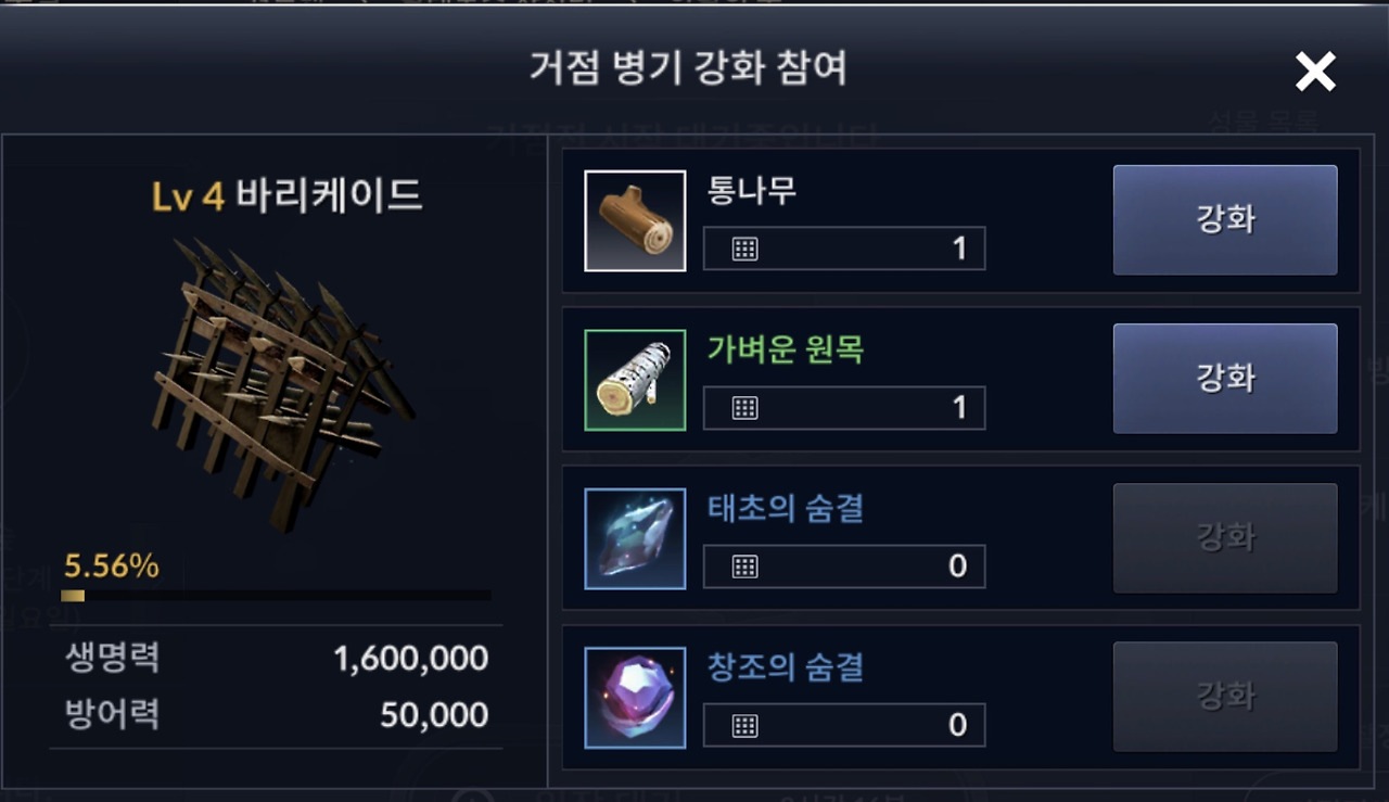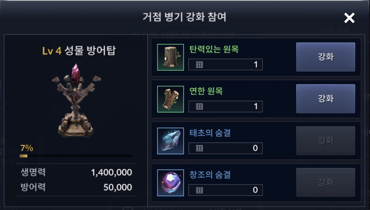 성물, 방어탑, 바리케이트를 강화 합니다.