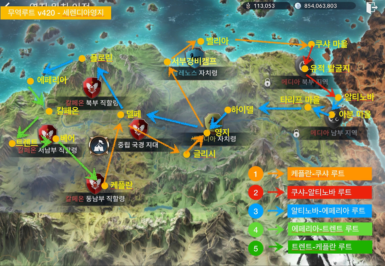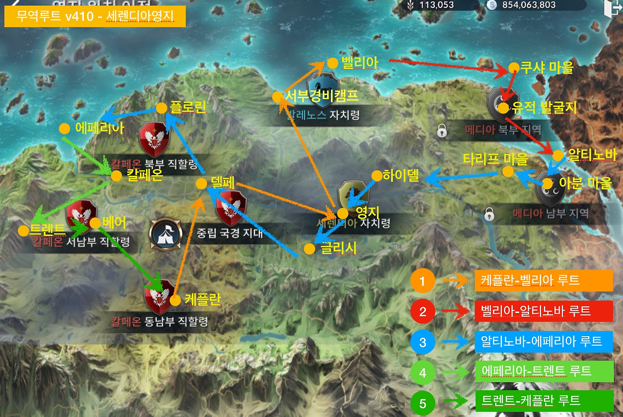 영지는 전체 루트의 중간 지점에 배치하는 것이 좋아서, 메디아 출시전에는 중립국경 지역에 영지를 두어 꿀좀 보았는데... 현재 메디아가 출시된 상황에서 영지 위치가 왼쪽에 치우친 것이 되어버려 세렌디아로 이전을 검토하는 것이 좋을 듯 합니다만, 그래도 옮기는데 시간도 걸리고, 현재 영지 위치가 동작 안되는 것은 아니여서.. 영지 이전 하시기 전에는아래 루트로 진행하면 좋을 듯 합니다.