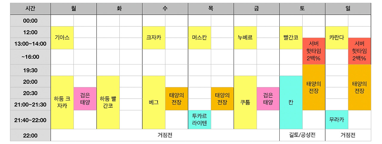 검은사막 모바일 3.2~8 주간일정표