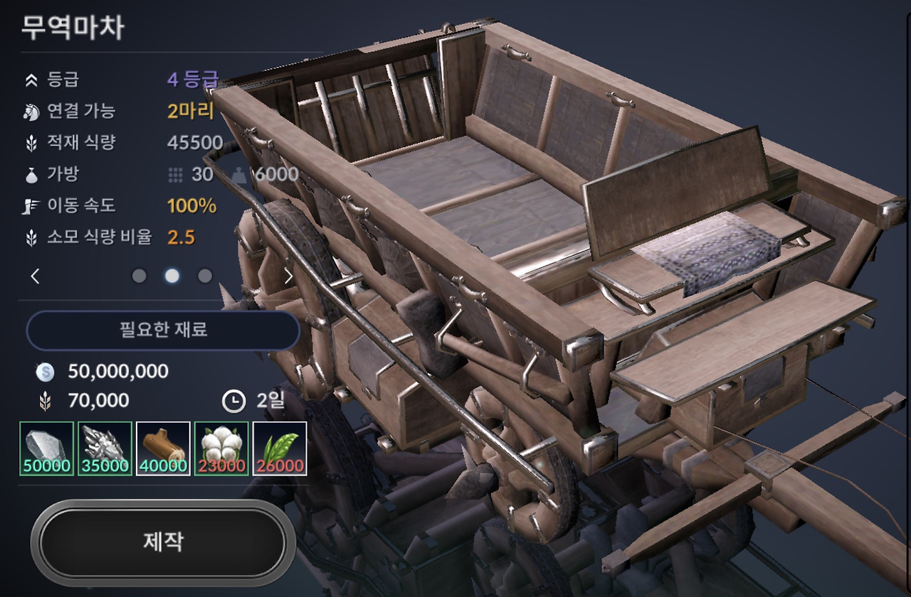 이벤트 아이템보다 은화 수급이 더 중요한 사람은 무역 마차를 빨리 맞추는 것도 나쁘지 않은 선택입니다.