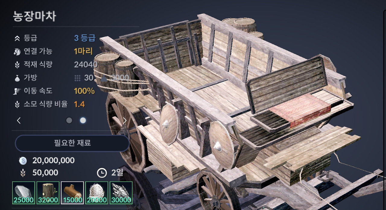 2) 짐칸은 농장 마차보다 2배로 6000, 식량도 두배 실을 수 있답니다