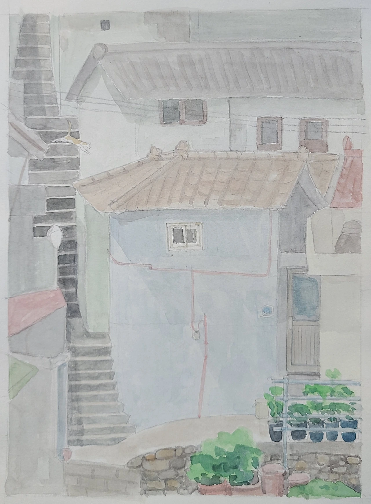 성북동은 간송 미술관에 전시를 보러 몇 번 가본 적 있는 동네였다. 마을버스가 간송 미술관을 지나 언덕을 올랐다. 언덕을 거의 다 올라가서 마을버스에서 내렸다. 시야를 가리고 있던 마을버스가 출발하고 나니 눈앞에 서울 성곽이 우뚝 서 있었다. 성의 북쪽이라는 이름 그대로 성 바로 북쪽에 있는 마을이었다. 성곽을 뒤로 하고 골목으로 접어들었다. 복도처럼 좁은 골목이었다. 그리로 이삿짐이 드나들 수 있을까 걱정하며 걸음을 옮겼다. 커브를 돌자 골목 입구에서부터 따라오던 하수구 냄새가 퇴비 냄새로 바뀌더니 길 한쪽이 탁 트이면서 고구마 밭이 나왔다. 밭 가장자리에 내가 찾던 주소의 집이 있었다. 면적은 좁은데 축대 위에 세워져 키만 훌쩍 큰, 목이 긴 반찬통 같이 생긴 집이었다.