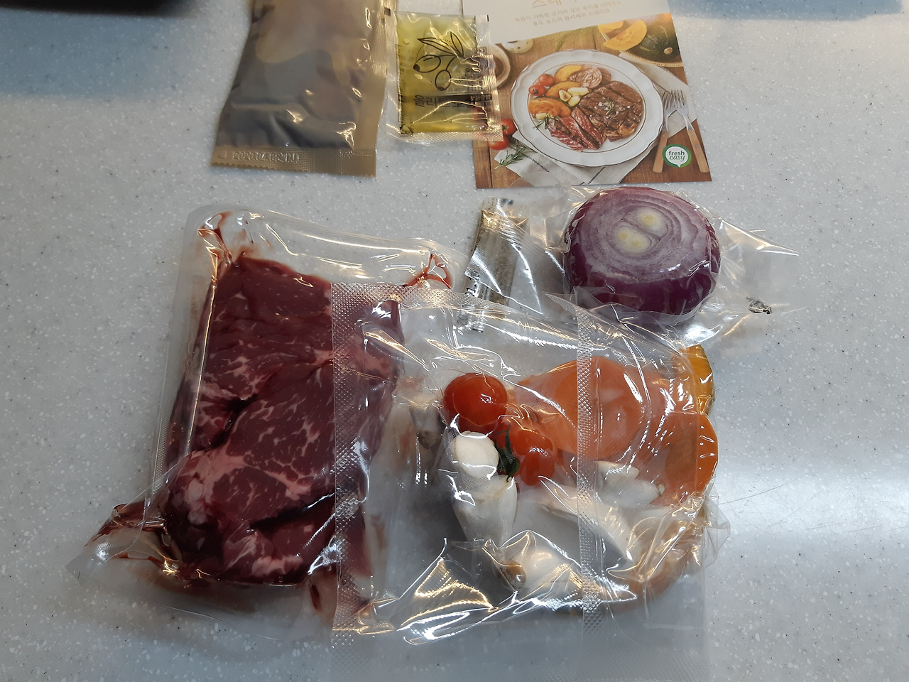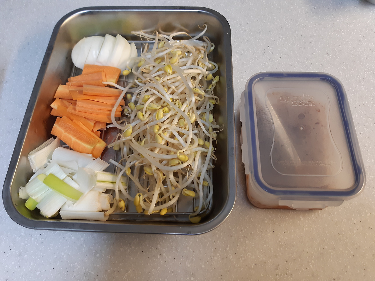 밀 키트는 재료를 모두 손질해서 포장하고 양념까지 모두 포장되어 있어서 먹기 전에 포장을 모두 뜯고 넣어서 불에 조리만 하면 되는 제품이다. 요새 이런 밀 키트를 파는 곳이 많고 이벤트도 많이 한다. 이벤트가로 저렴하게 여러 종류를 먹다가 우리 집도 이런 밀 키트를 만들기로 했다. 손이 느리고 요리하는데 시간이 많이 걸리는 날 위해서 남편은 가끔 남편 밀 키트를 만들어준다. 집에서 미리 손질해둔 야채들을 적당한 크기로 썰고 양념도 미리 만들어서 냉장고에 넣어준다. 그러면 퇴근하고 돌아온 나는 남편 밀 키트에 있는 재료를 볶기만 해서 식사를 해결하는 거다. 퇴근하고 돌아오면 정말 힘들어서 외식이 유혹할 때가 많다. 그런데 집에 요런 밀 키트가 있다는 걸 생각하면서 얌전히 집에 돌아와서 15분에서 20분만 투자해서 집밥을 먹게 된다. 밀키 트는 저녁 먹고 나서 조금 쉰 다음 힘을 내서 만들기도 하고 남편이 집으로 돌아와서 만들어기도 한다.