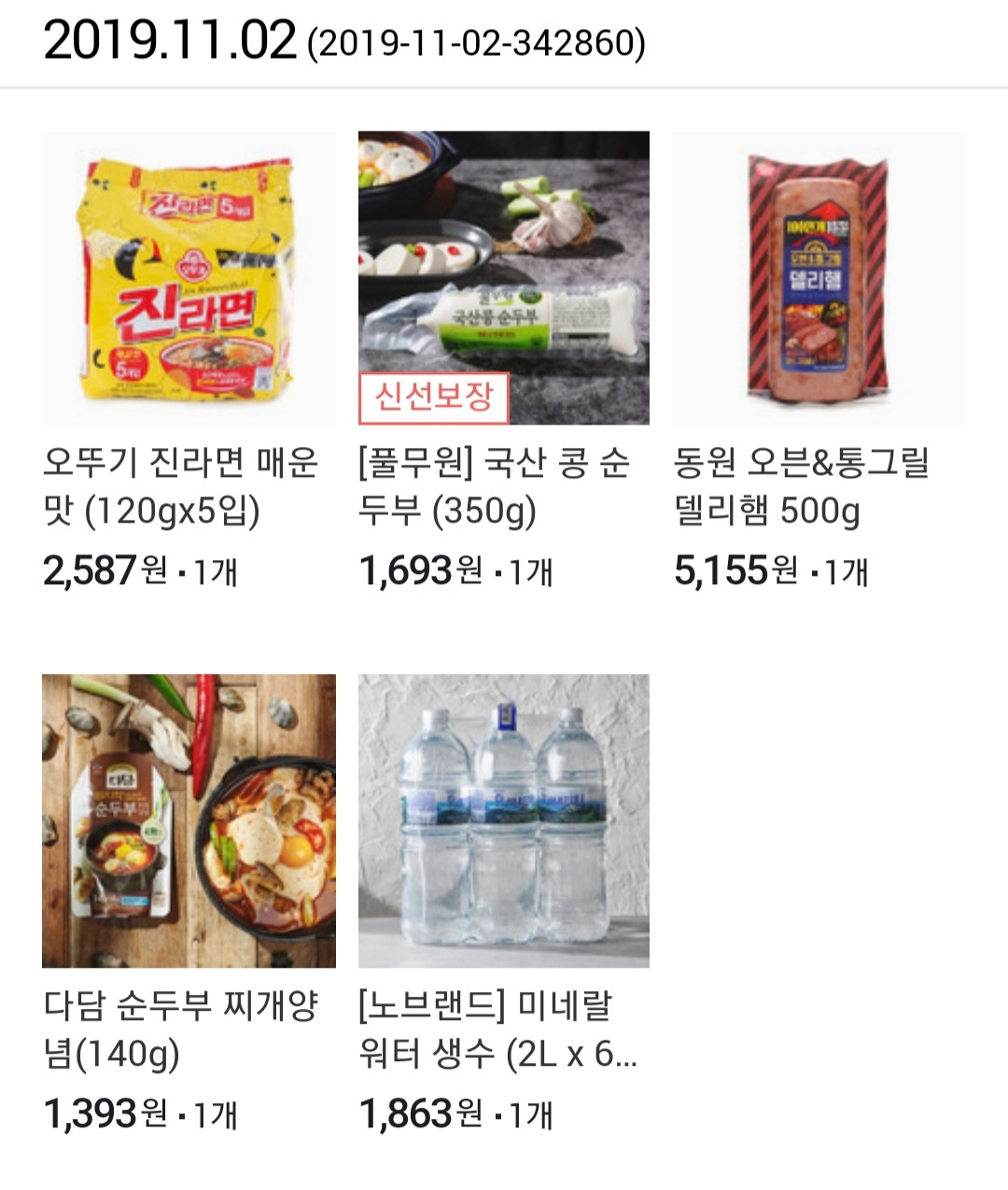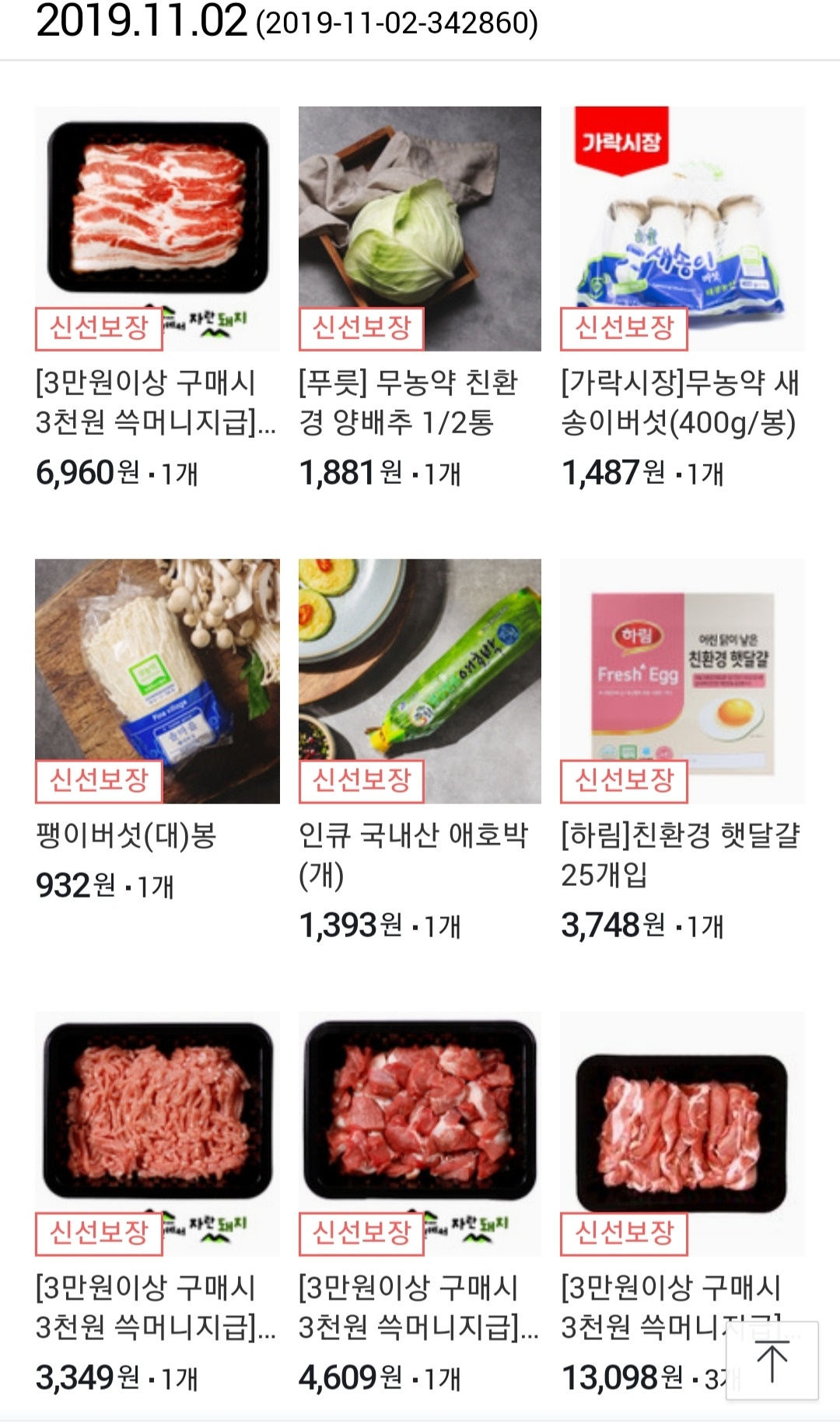 2019년 11월 2일 국민용돈 만원 받으며 4만원 식자재 구매
