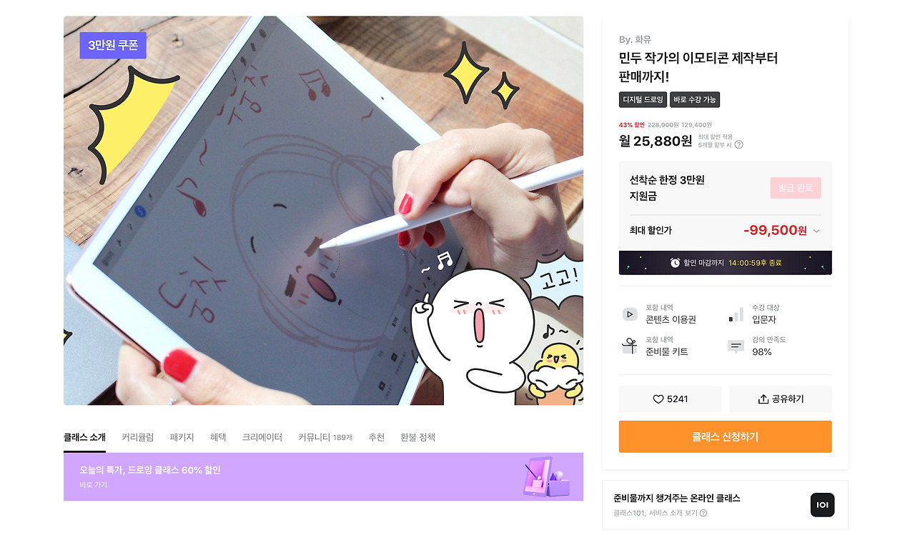 그런데 내가 그간 1순위로 듣고 싶었던 이모티콘 제작 강의가 이벤트 강의 목록에 있는 것이 아닌가!! 정말 정말 기뻤다.