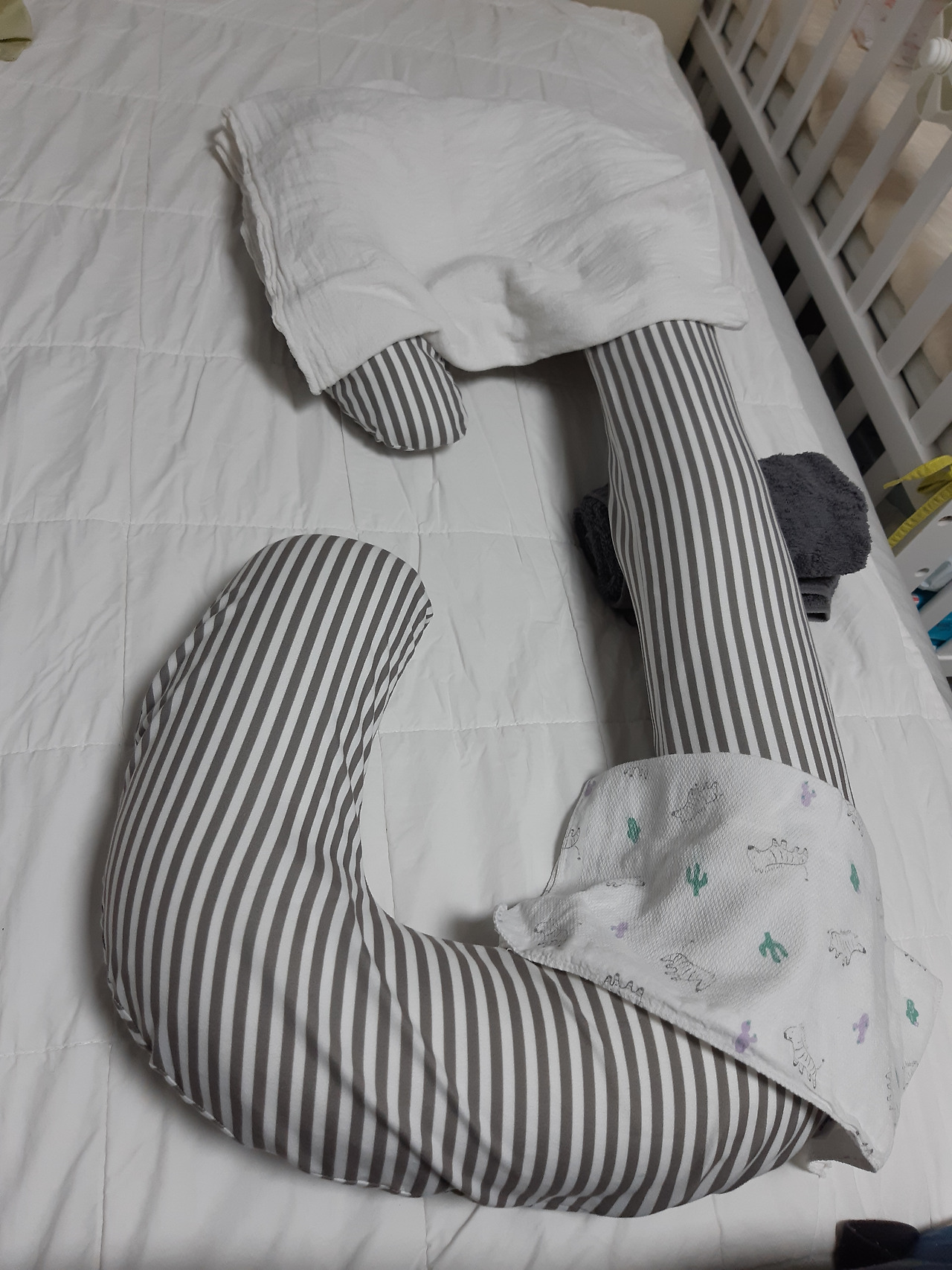 아이가 오른쪽으로만 자다 보니 오른쪽 두상이 많이 눌렸습니다. 걱정하다가 특정 업체 제품을 이용해서 셀프 교정하는 케이스를 봐서 가격을 알아봤더니 많이 부담스러운 가격.. 그래서 내 주변 중고마켓 당*을 이용했습니다. 집에서 20분 거리에 절반 가격으로 판매하는 것을 구입해 아이에게 적응시키는 중입니다. 아이가 잘 적응할지 또 두상이 나아질지 안 나아질지는 모르지만 그래도 나중에 내가 할 수 있는 것은 다 해봐야 후회가 없을 듯하여 구매했습니다. 옆으로 자는 것을 도와주는 제품인데 아이가 잘 적응해서 두상 눌린 것이 교정되길 바랍니다.