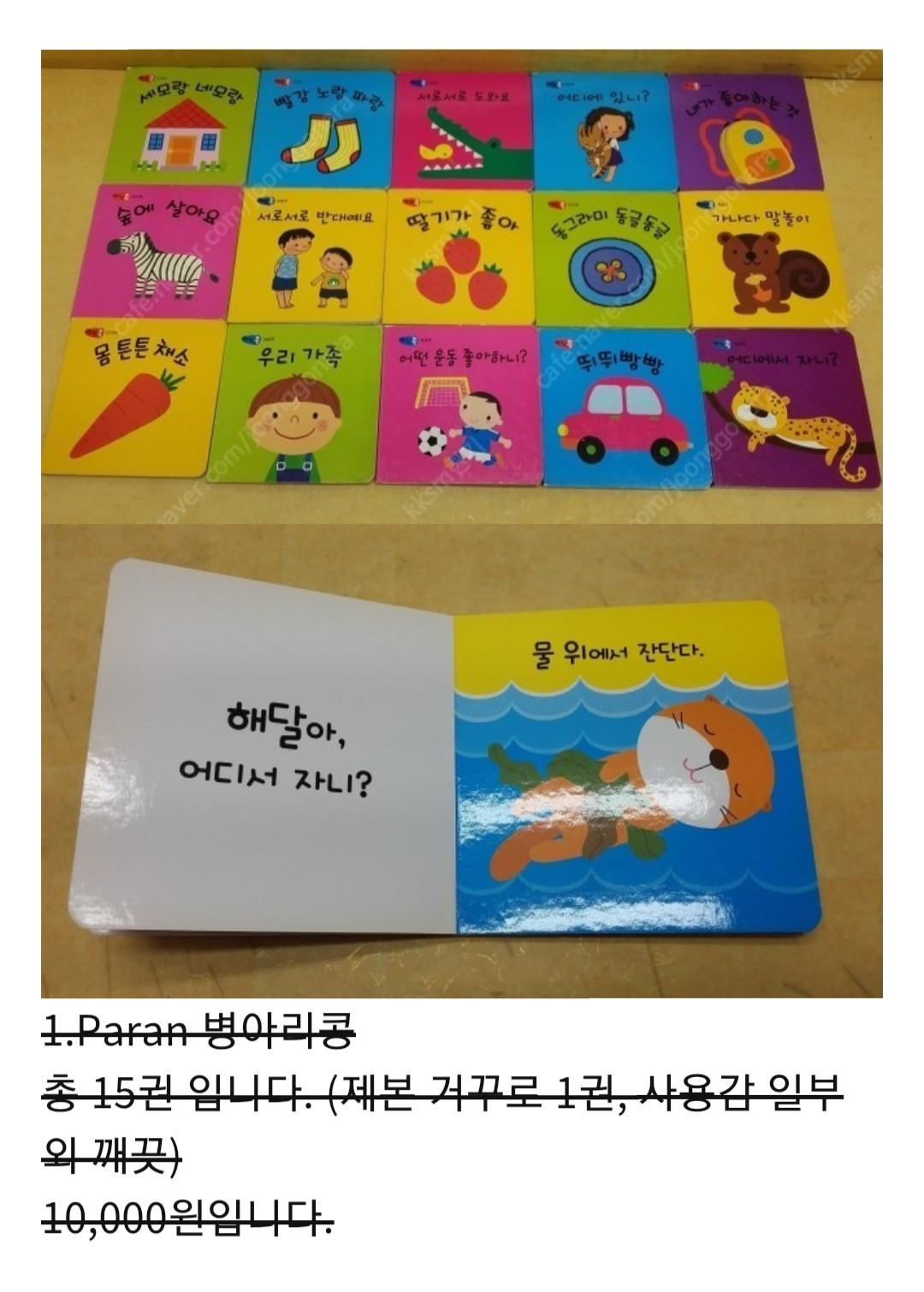 내가 아이에게 줄 수 있는 게 무엇일까를 요새 생각하게 됩니다. 나만 생각했던 것에서 벗어나서 이제 유튜브에서도 아이 관련된 특히 교육 관련 영상을 많이 찾아보게 되고 ‘책 육아’에 대해 관심을 가지게 되었습니다. 태어나자마자 책을 읽어주는 엄마들이 있다는 것도 알고 그 열정이 부럽고 저도 아이에게 책을 많이 읽어주고 좋아하게 해주고 싶어 졌습니다. 역시나 새것으로 구비하려고 하니 너무나 큰 비용이 필요할 듯하여 중고제품을 찾아봤습니다. 저렴한 가격에 맘에 드는 상품이 있어 구비하였고 이제 차차 활용방법을 더 연구해서 책을 읽어줄 생각입니다. 특히나 관심 있던 노부영 보드북을 한 권당 3,000원에 총 5권을 사서 아주 만족스럽습니다. 아이와 노부영 노래를 부르면서 책을 함께 읽는 것을 상상만 해도 행복하네요.