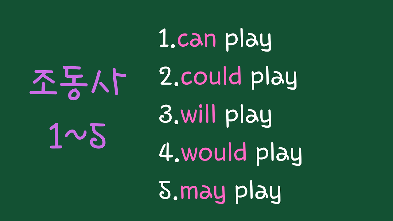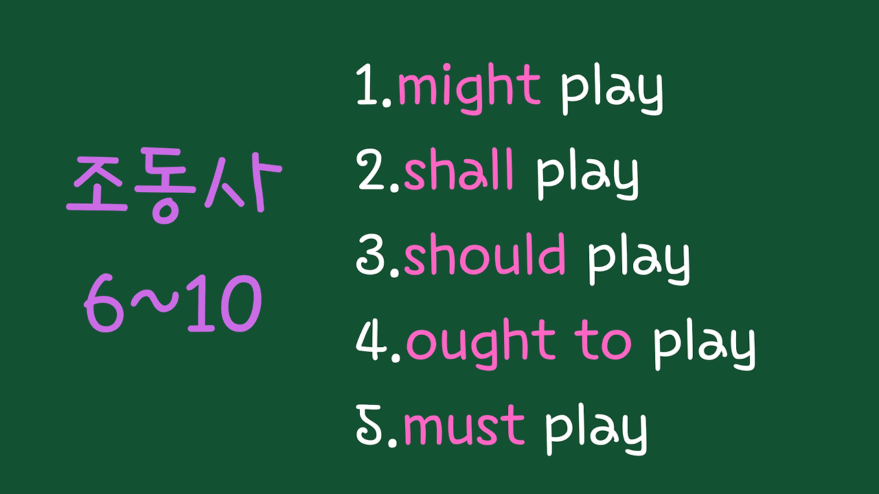 영어에서 동사는 매우 중요합니다. 문장 속에서 동사는 -s, -ed, -ing로 변할 수 있습니다. 또, 동사 앞에 have(has), am, are, is (be동사 모든 형태)를 두거나 can, could, will, would, may, might, shall, should, ought to, must 같은 단어들로 동사를 보조합니다. 동사를 보조하는 단어들을 조동사(modal verb)라고 합니다.