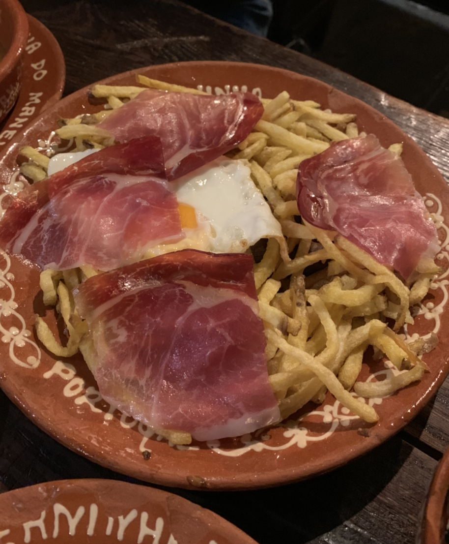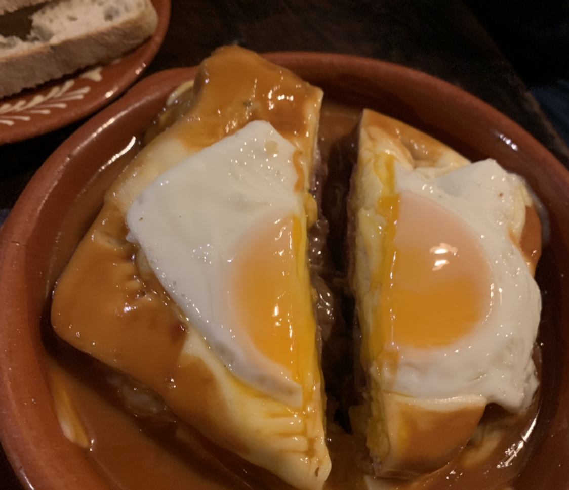 또 포르투갈에서 유명한 음식인 프란 세지냐를 먹은 것은 둘째 날! taberninha do manel라는 곳이었다. (주소: Av. de Diogo Leite 308, 4400-111 Vila Nova de Gaia, 포르투갈) 이 곳은 현지에서 오래 사신 분이 사주셨는데, 관광객보다는 현지인이 더 많이 오는 강가에 자리 잡은 분위기가 최고인 레스토랑이었다. 프란 세지냐는 포르투에서 최고 고칼로리 음식으로 유명한데, 그에 얽힌 일화가 있다고 한다. 스테이크 고기, 계란, 빵, 햄, 치즈, 소시지 등을 모두 넣어서 만든 샌드위치로, 비싸지 않은 재료를 많이 넣어서 금방 배부르게 먹어야 하는 사람들 사이에서 유행했다고 한다. 너무 맛있었다!