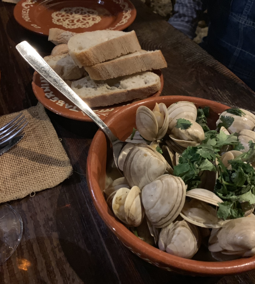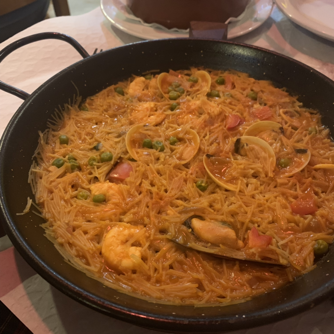 - 첫날 리스본에서 해물밥과 빠에야는 taverna alfacinha에서 먹었다. (주소: R. dos Sapateiros 179, 1100-577 Lisboa, 포르투갈). The Fork 앱으로 예약을 하고 갔는데, 예약하기 정말 잘했다. 자리가 별로 많지 않아서 돌아간 팀도 많았다. 들어가기 직전에 나온 외국인 노부부가 정말 맛있다며 극찬해서 더 기대되었다. 여기서는 스페인식 빠에야와 해물밥(seafood rice)을 먹었다. 둘 다 너무 맛있었다! 빠에야를 한 번이라도 먹어봤다면 예상가는 맛이겠지만 항구 도시답게 큰 해산물이 듬뿍 담겨 있었기 때문에 최고였다.