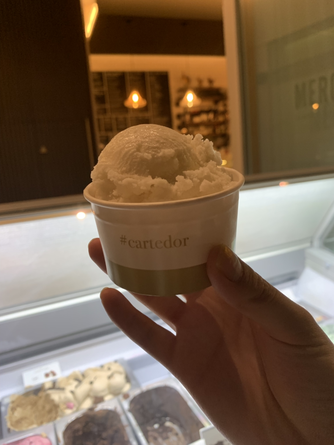 디저트는 사실 파리에 너무 맛있는 게 많아서 큰 관심 대상은 아니었다! 그래도 샹그리아로 기분이 좋아진 상태에서 친구와 사 먹은 젤라또는 최고! 맛있게 빠에야와 해물밥을 먹고 맛본 디저트도 최고. 밥을 다 먹을 때쯤 디저트 메뉴판을 달라고 하자, 직접 3가지 초이스를 접시에 담아 보여주셨고 비주얼로 2가지를 골라 먹었다. 성공적이었다.