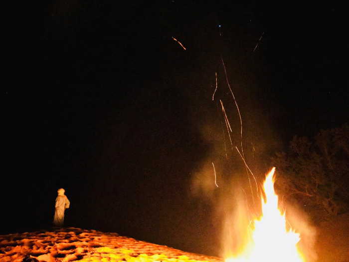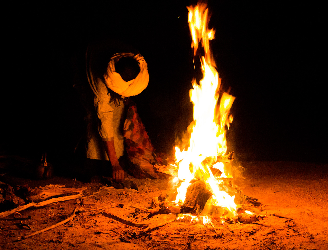 얼마 후 솔렌도 내 옆에 누웠고 조금 있다가 가이드 하리파도 담요 하나만 덥고는 마치 푹신한 매트리스에 눕는 사람처럼 모래 위로 누웠다. 그가 자기 전에 마지막으로 불에 넣은 장작 덕분에 모닥불은 꺼지기 직전 다시 생명을 되찾았고, 우리 넷은 그렇게 모닥불 주위로 옹기종기 누워있었다. 나는 잠에 들려 다가도 아주 조금 만한 인기척이나 소리에도 깜짝깜짝 놀라서 일어나곤 했다.