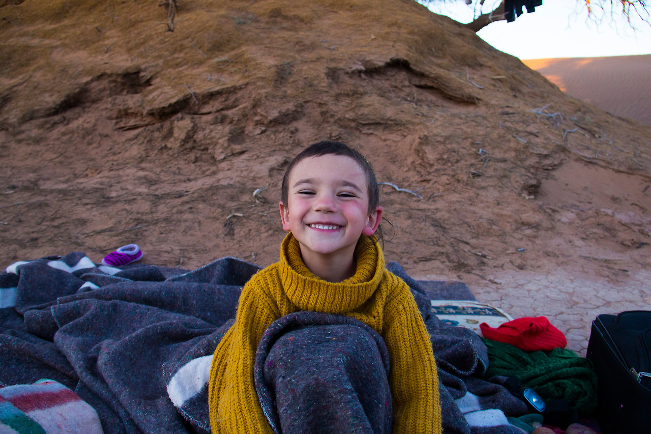 그렇다고 나 혼자 인건 아니었다. 나머지 일행들은 잠을 자기 위해 텐트에 들어갔지만, 사막 모닥불 주위로는 솔렌과 그녀의 아들 샤샤 그리고 가이드 하리파가 있었다. 네 살짜리 샤샤는 아무런 두려움과 근심 없이 이미 모닥불 옆에서 깊은 잠에 든 지 오래였고, 솔렌과 하리파는 다른 사람들이 깨지 않도록 최대한 낮은 목소리로 모닥불 옆에서 한참 동안 속삭이며 대화를 나눴다.