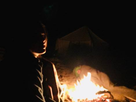 첫날밤이라 어느 정도 추울지 다들 알지 못하였기에 밖에서 자기를 지원하는 사람이 별로 없었으며, 결국에는 솔렌과 그녀의 아들 샤샤 그리고 나 이렇게 세명만 온전히 별 아래서 밤을 보내기로 했다. 추위를 대비해 따뜻한 슬리핑 백을 떠나기 일주일 전에 부랴부랴 사서 오기는 했지만, 나 역시 장벽 없는 사막의 밤의 추위가 얼마나 매서울지는 예측하기 힘들었다. 게다가 나는 추위에 워낙 약해서 일상 속에서는 조그마한 추위도 참지 못한다.