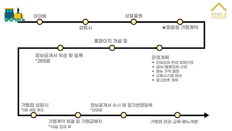 간략히 가맹본사 설립과정에 대해 설명드렸는데요, 가맹본사는 가맹계약 후 가맹점을 통제할 권한도 있지만 지속적 교육, 메뉴개발 등을 통해 지원할 의무도 있습니다. 좋은 아이템과 지속적 지원으로 가맹점주들의 매출을 견인해 상생할 수 있는 많은 본사가 설립되길 기원합니다.